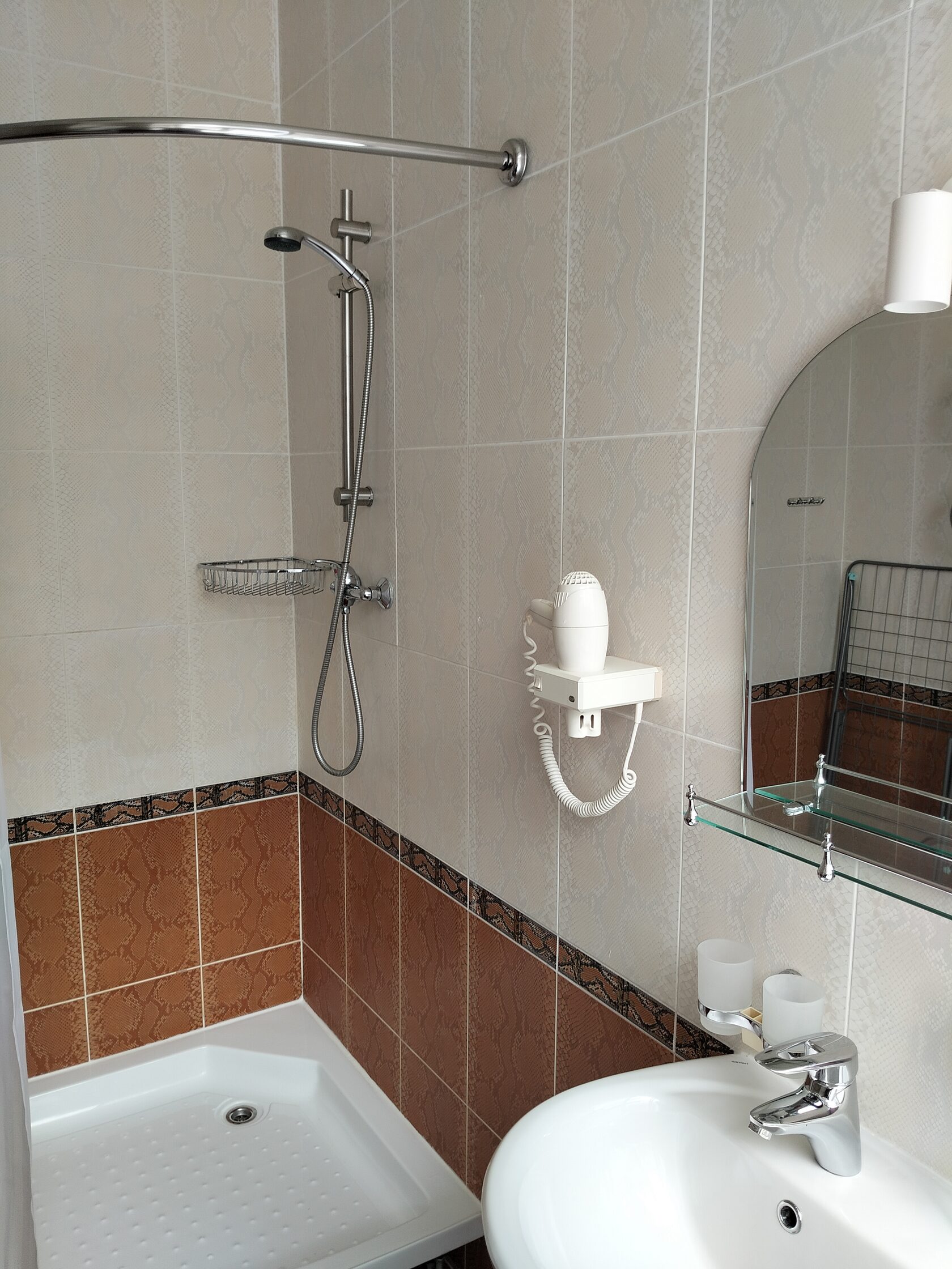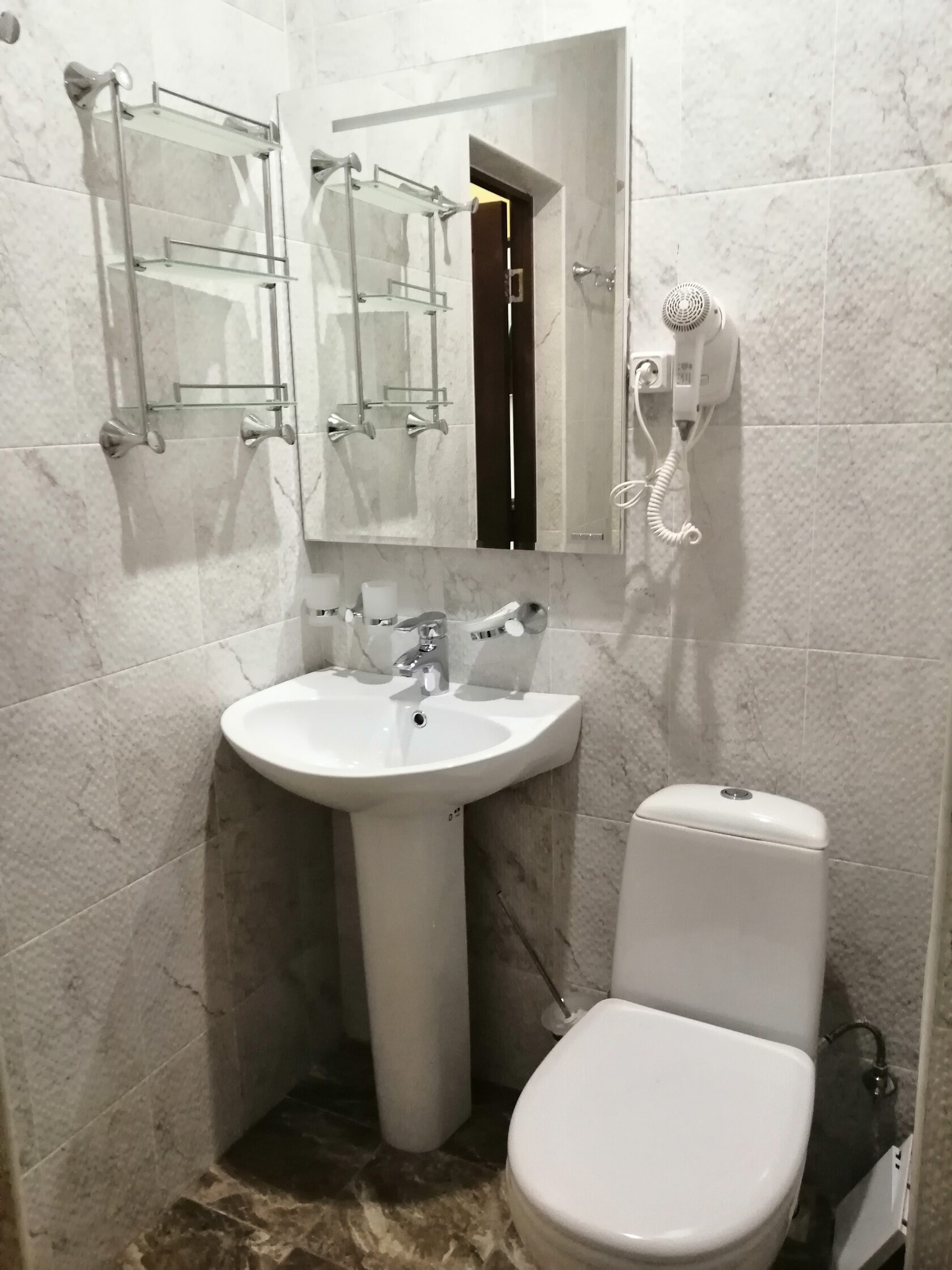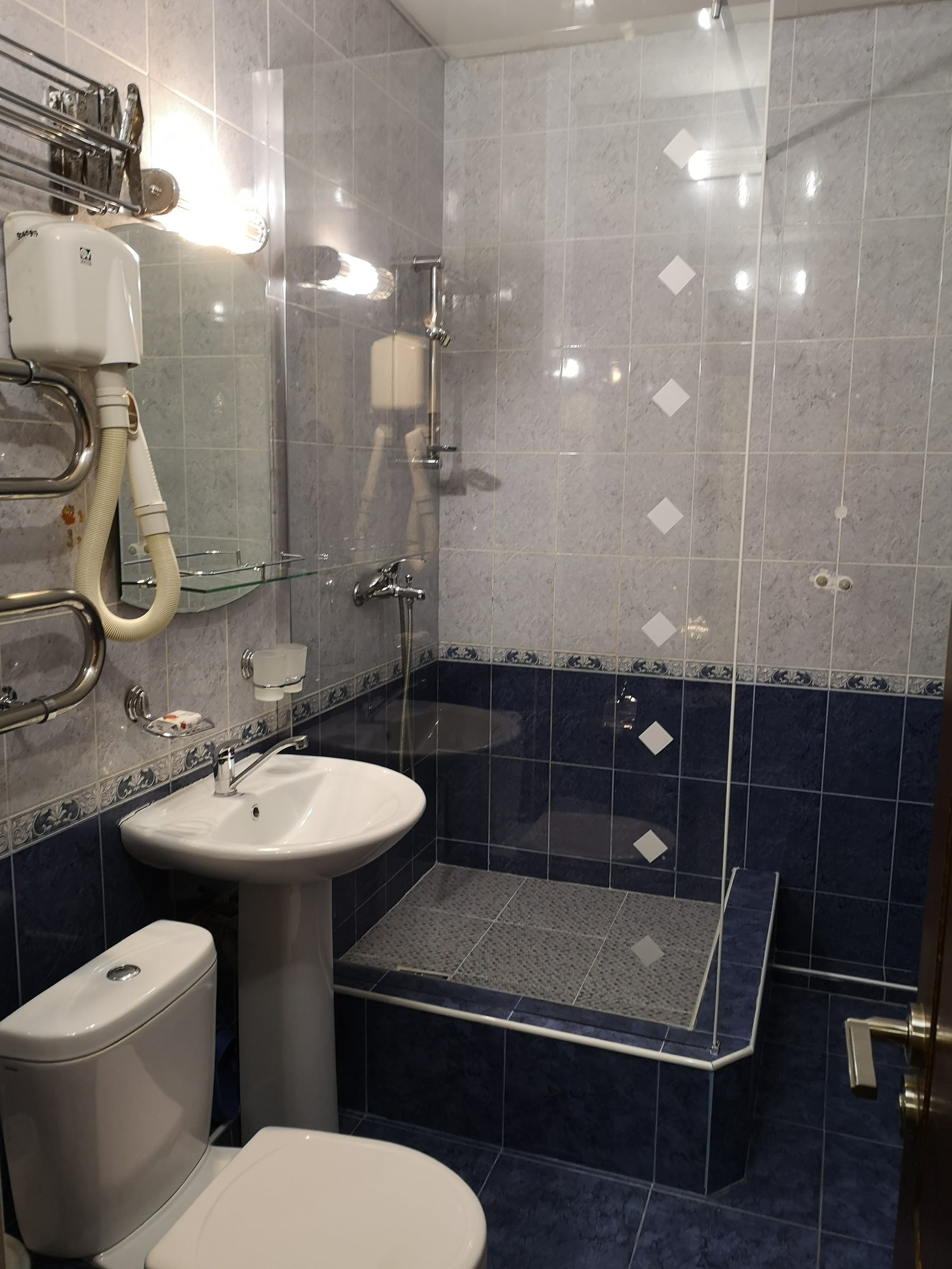 Санузел: с душем или ванной, туалетные принадлежности, фен.