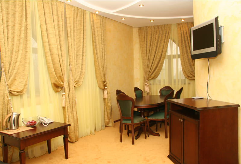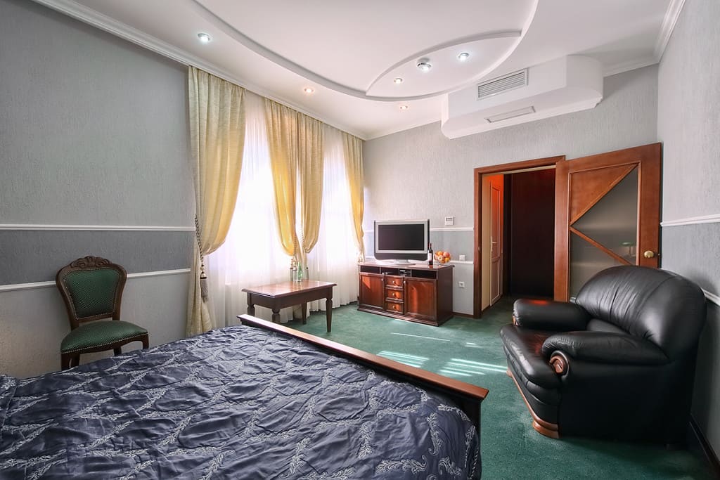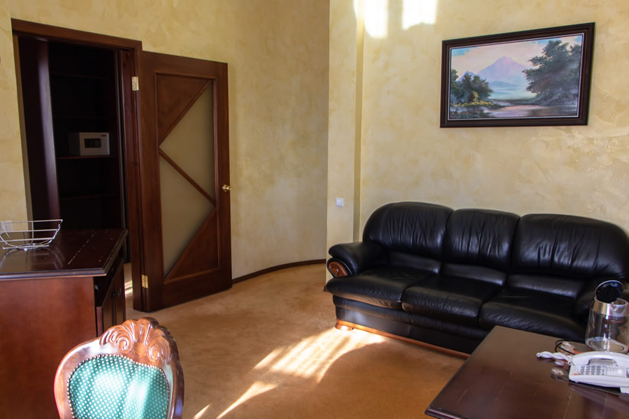 На каждом этаже расположены 1-на, 2-х или 3-комнатные номера с центральным кондиционированием воздуха. Во всех номерах есть телевизор, холодильник, телефон, сейф.