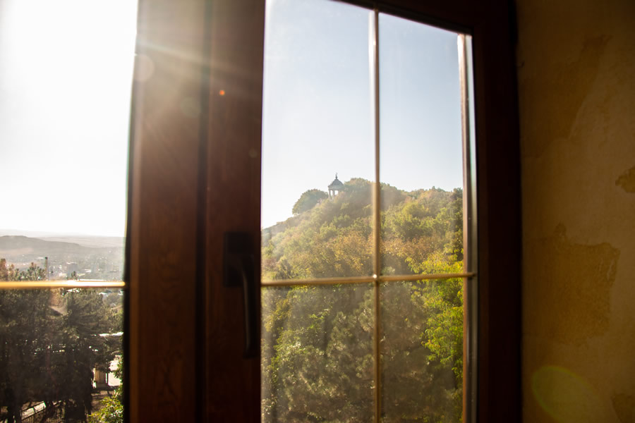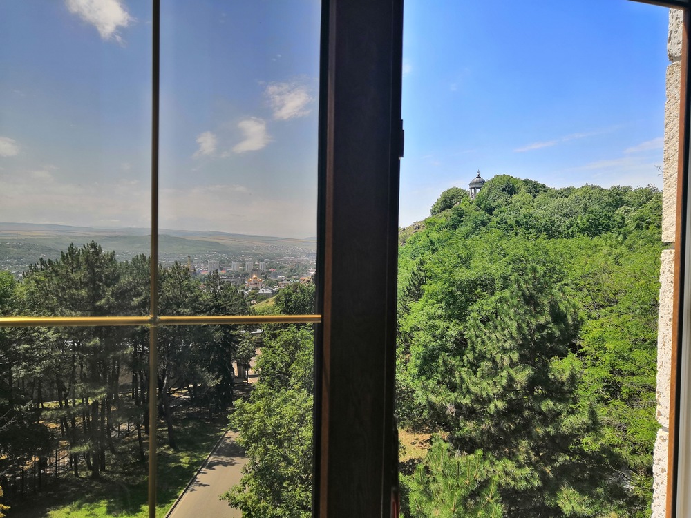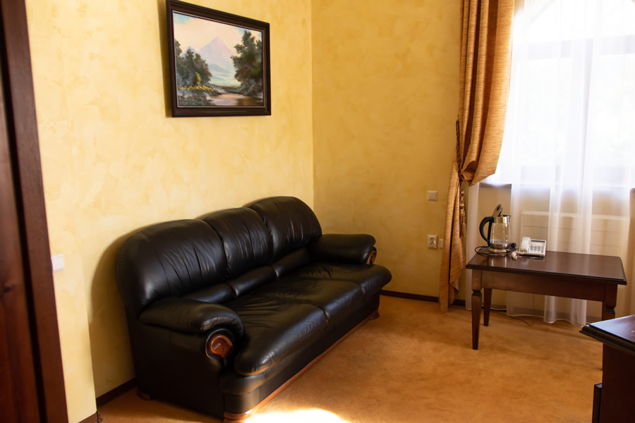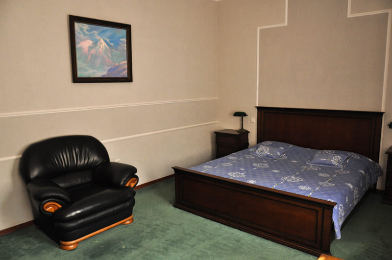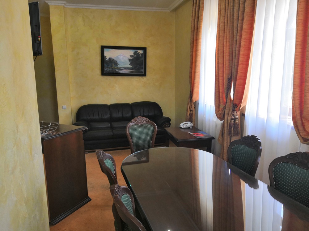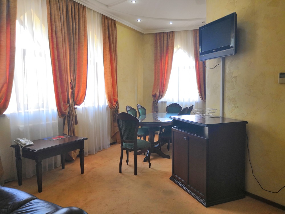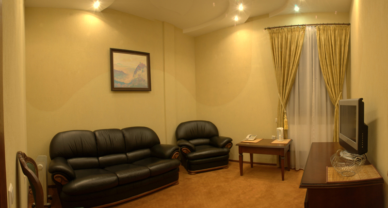 Отель расположен в живописном месте, у подножия горы Машук. Интересная архитектура, похож на средневековый замок. У нас был номер «однокомнатный люкс», по местной классификации. В общем и целом, неплохо. Но такое впечатление, что отель был превосходен, когда был новым. И сейчас, если судить по состоянию нашего номера, потихонечку приходит в упадок. Прекрасная кровать в номере, огромная просто и удобная. Хорошие тумбочки, красивые на них светильники. Замечательный вид из окна. Но ковер в каких-то пятнах, очень неопрятный. ТВ-панель даже не знаю, какого года выпуска, скоро в музей. Всего 20 каналов... Расшатанные дверцы у буфета, мелочь, конечно, но в глаза бросается. На завтрак кормили вкусно, здесь не придерешься. Девушки на ресепшн, Варвара и Светлана, отзывчивые, всегда шли нам навстречу. Уборка качественная, ежедневная. Три раза были в сауне - супер. Но опять о мелочах. В сауне один раз не было воды в кулере (а чай-то хочется попить), в другой раз вода была, но не было самого чая. И вот сами судите. На наш взгляд (путешествуем много), отель - три звезды, наш номер - не люкс, конечно, а улучшенный стандарт. Но если устранить все мелочи, связанные с человеческим фактором, поменять кое-что в номерах, словом, «подтянуть» отель, вполне можно выйти на 4 звезды. Большое спасибо всему персоналу, отдохнули мы прекрасно!