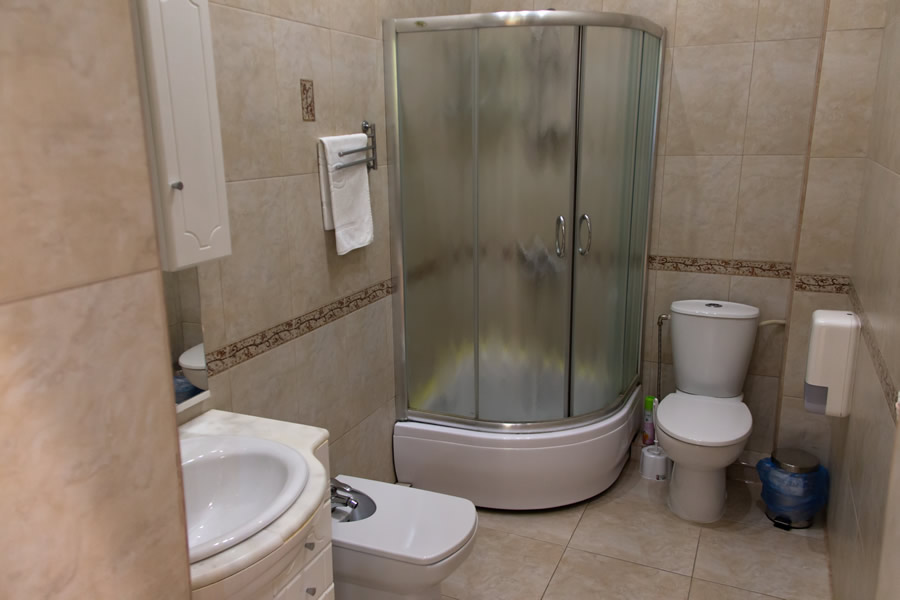 Санузел: Два санузла: душевая кабина, стандартная ванна, набор полотенец, халат и тапочки.