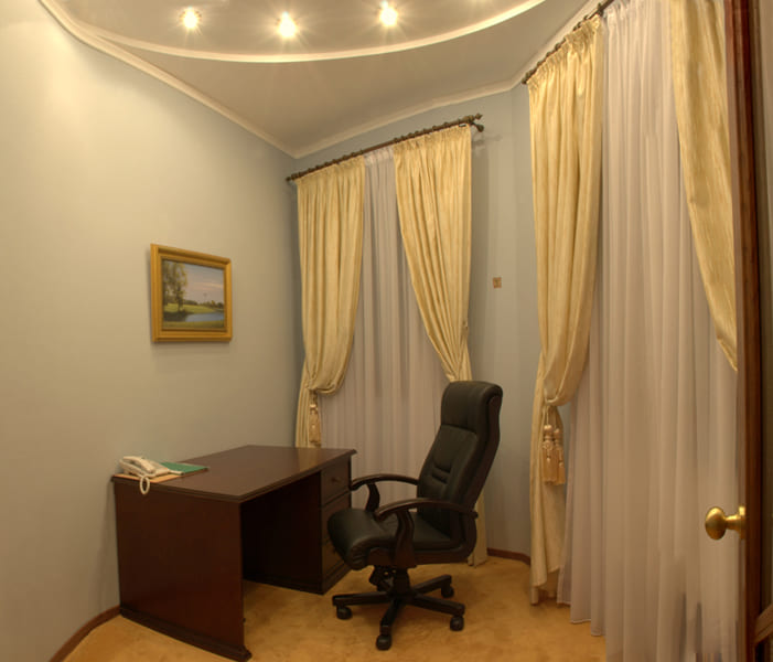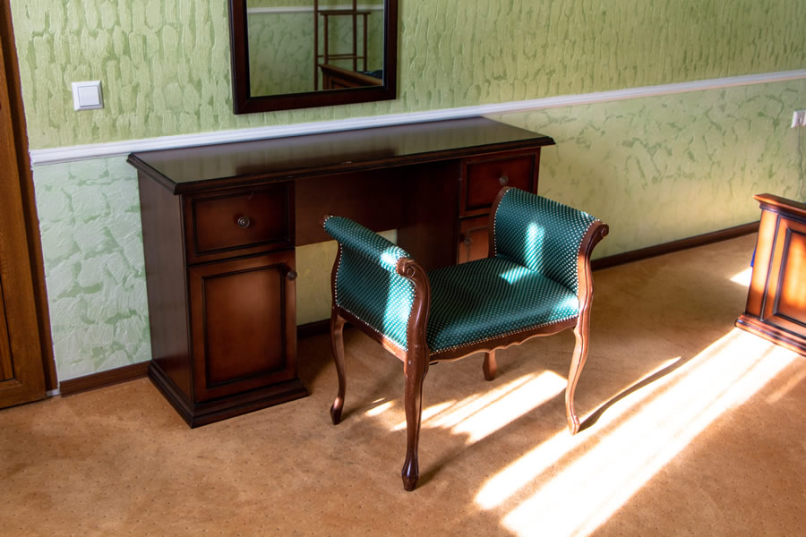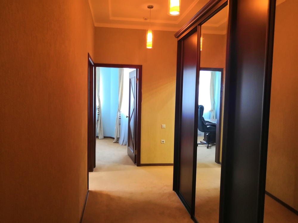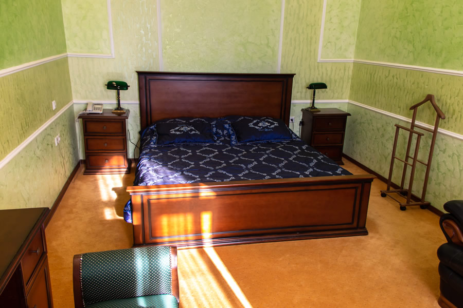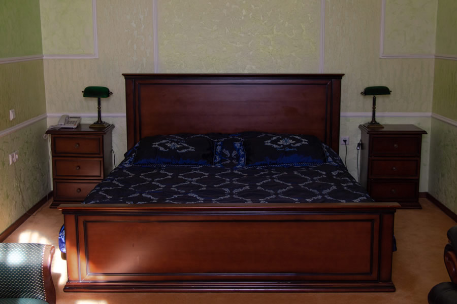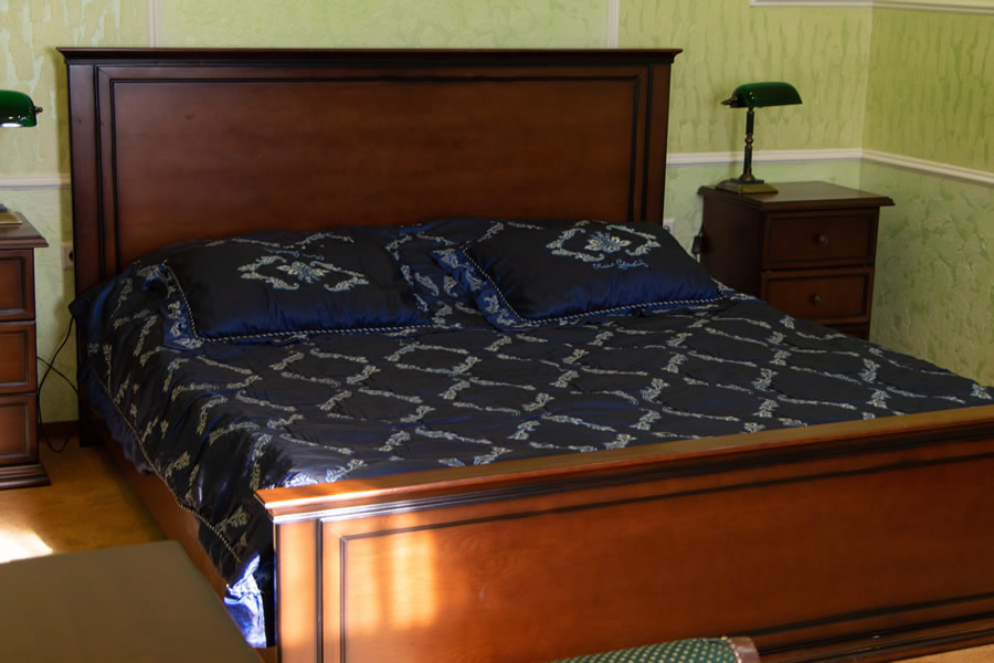 Мебель: Двуспальная кровать, мягкий диван, кресло, обеденный стол на 6 персон, рабочий стол, прикроватные тумбочки.