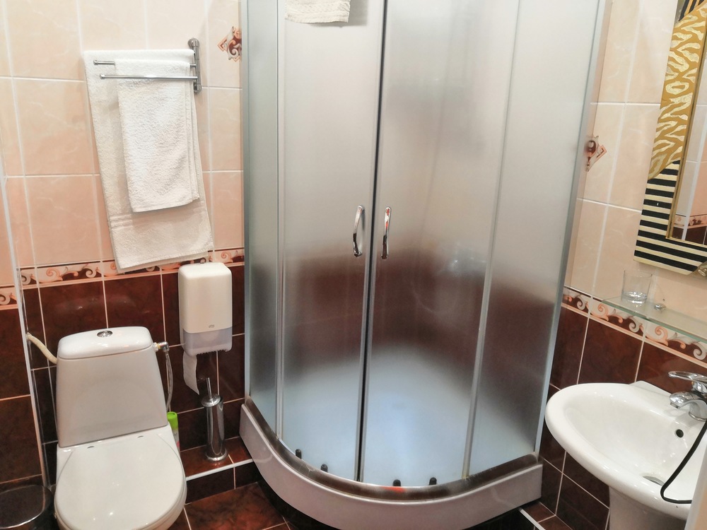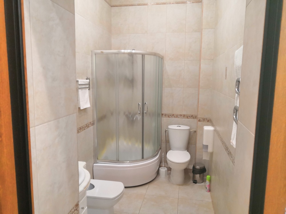 Санузел: Душевая кабина, набор полотенец, халат и тапочки, фен.