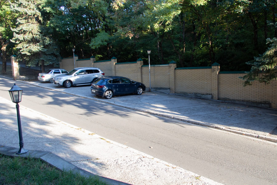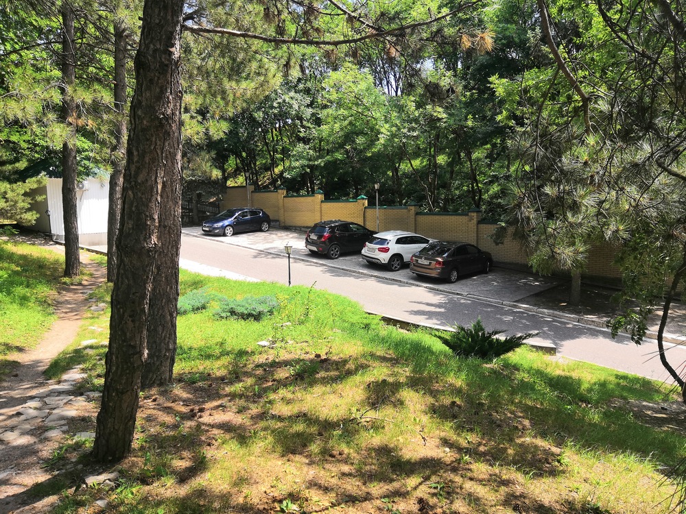 К санаторию удобно подъехать, есть охраняемая парковка. Территория вокруг комплекса благоустроена, освещённая, есть беседки. Работает круглосуточная охрана.