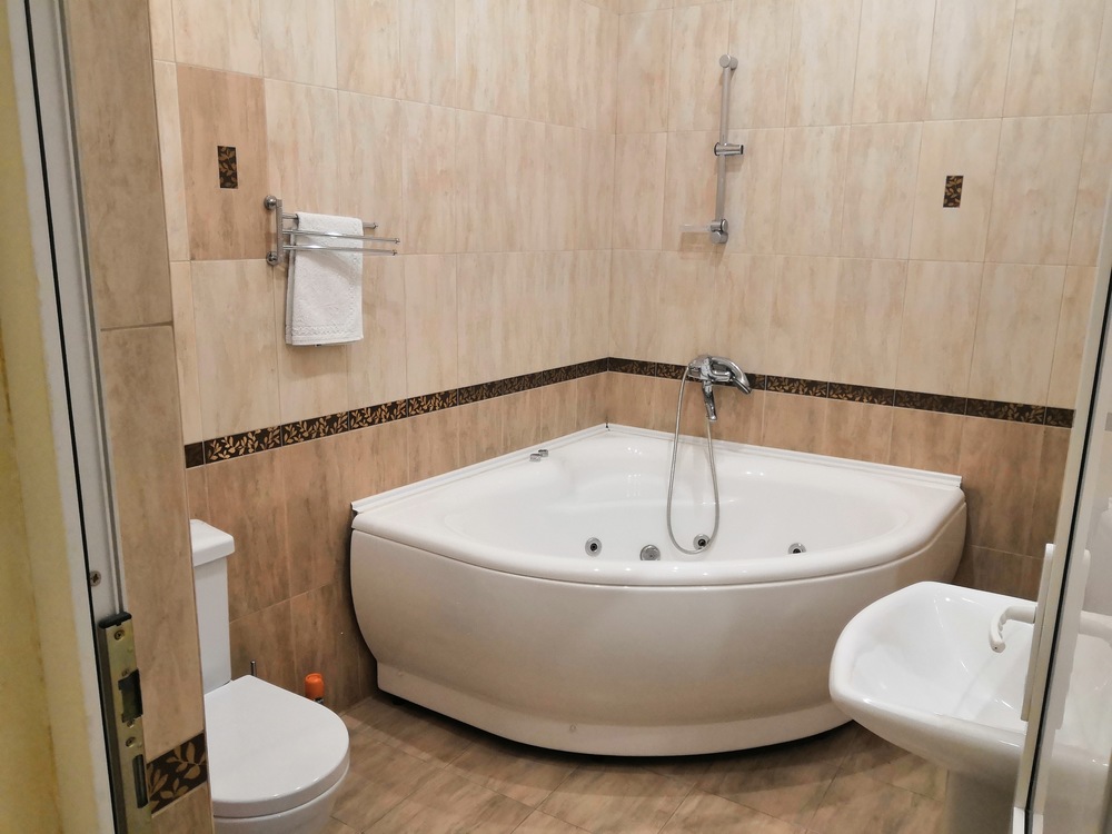 Санузел: Два санузла: душевая кабина, ванна джакузи, набор полотенец, халат и тапочки.