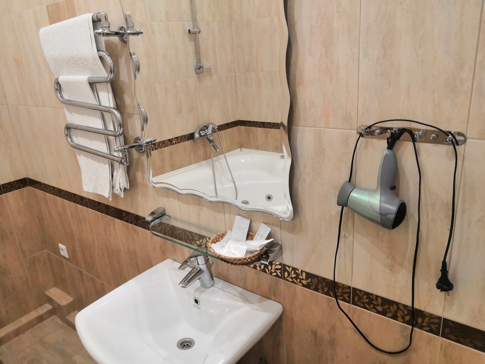 Прекрасное расположение, близко от основных достопримечательностей. Конечно, это далеко не четыре звезды. Дизайн - привет от «крутых евроремонтов «90-х, во время нашего пребывания кондиционер в номере жил своей жизнью, так же как и холодильник, телевизор не включался. Белье , полотенца, халаты чистые. Хороший набор отельных гигиенических и косметических принадлежностей. Все чисто, но все уже такое не новое. В душевой кабине грибок. Душ работал плохо. Девушки администраторы приветливы, гостеприимны. Заказывала одну большую кровать - в результате две отдельные, это, разумеется, не критично, просто иллюстрация некой общей нерасторопности. Переночевать одну-две ночи можно вполне.