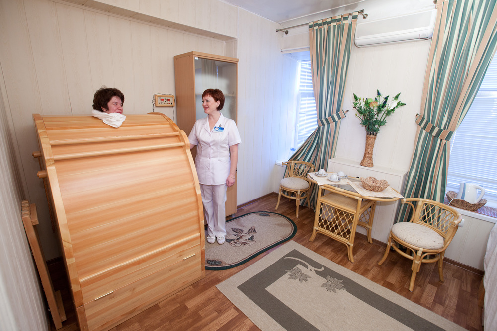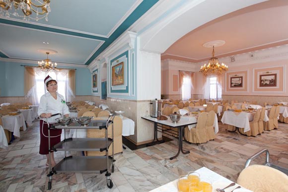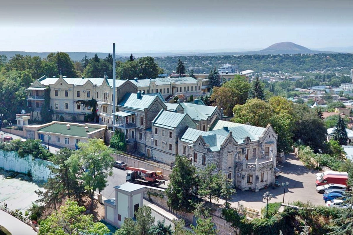 Санаторий в центре парка: расположен в «Цветнике», рядом Лермонтовская галерея, грот Дианы и кофейня