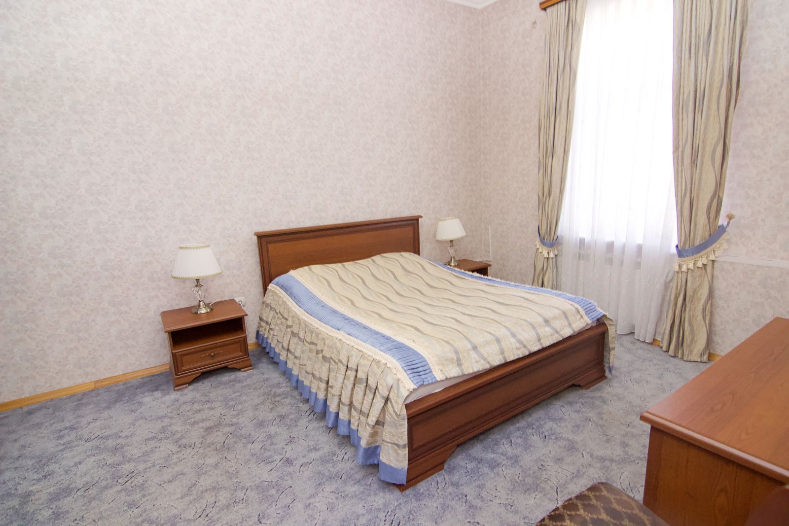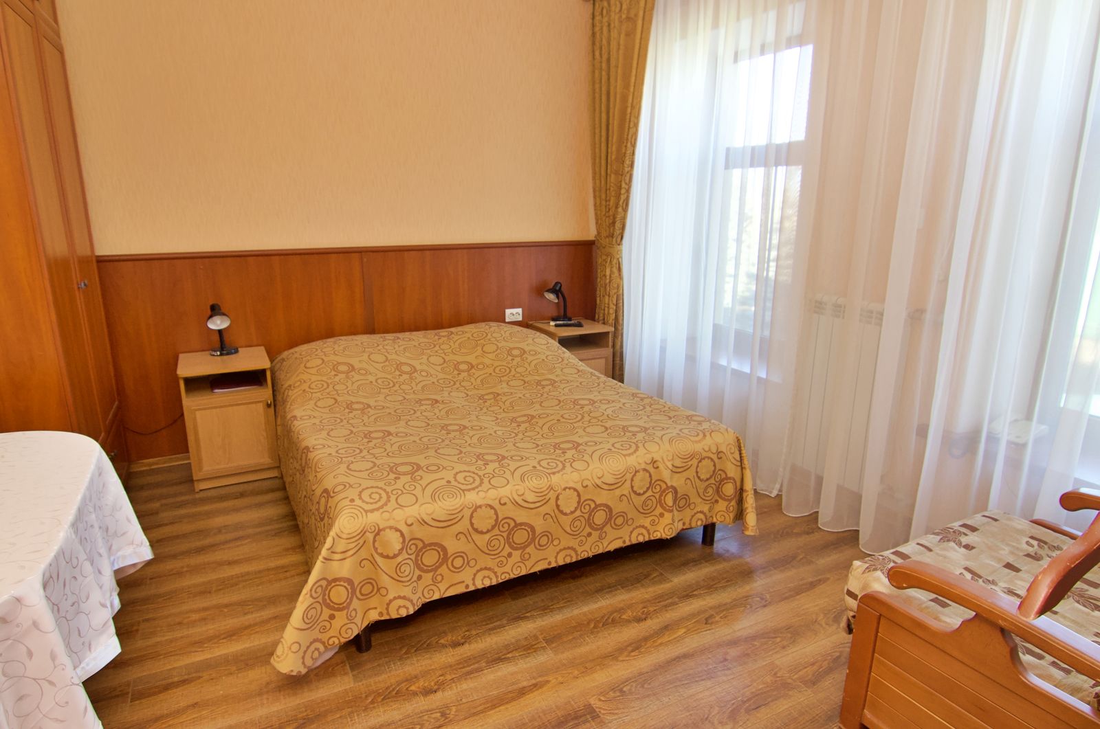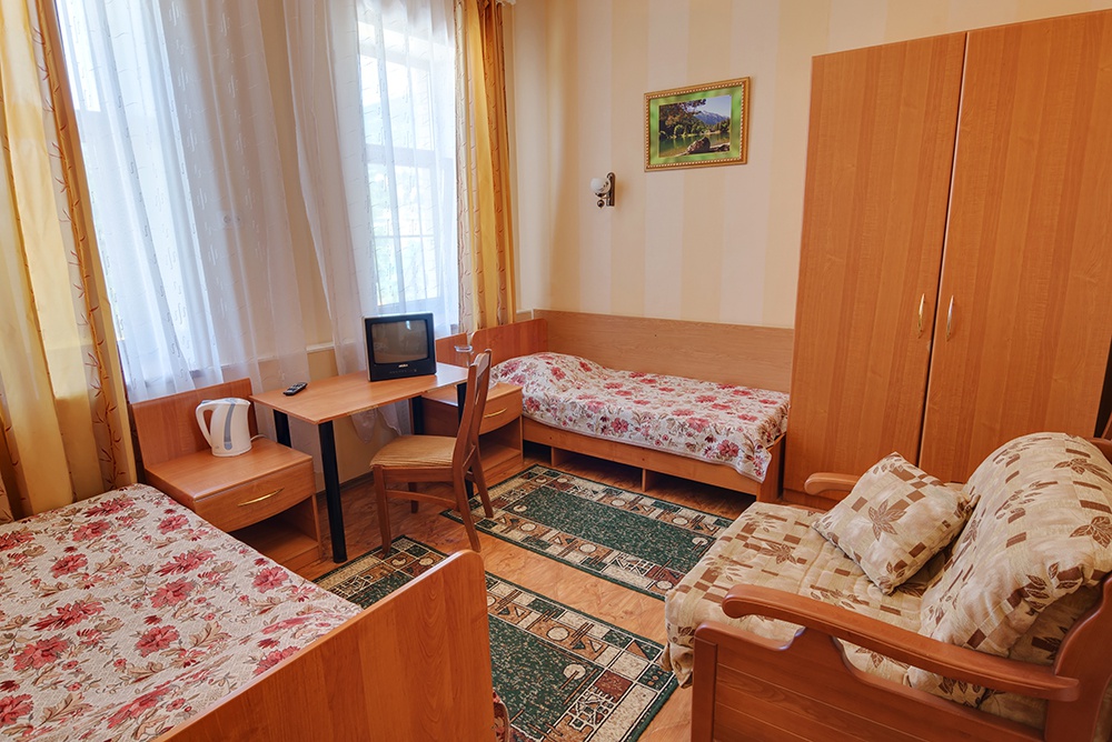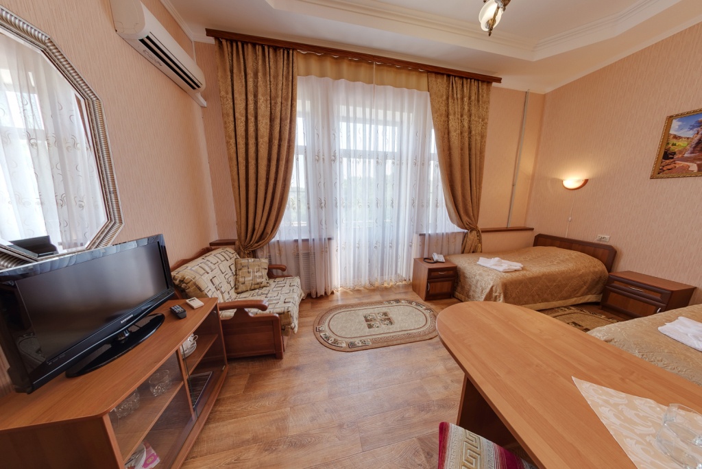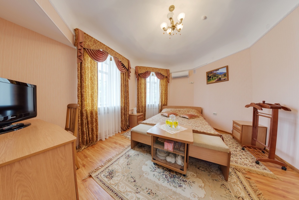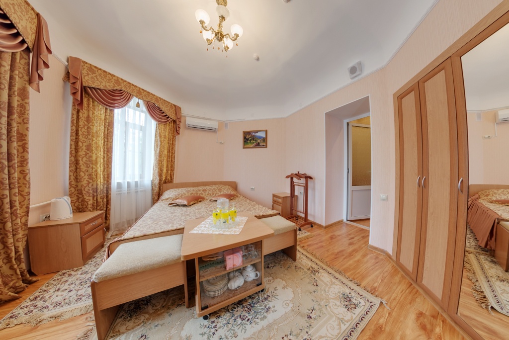 Сервис: Wi-Fi бесплатно, смена полотенец, смена постельного белья, уборка номера, услуги телефонной связи по территории отеля.