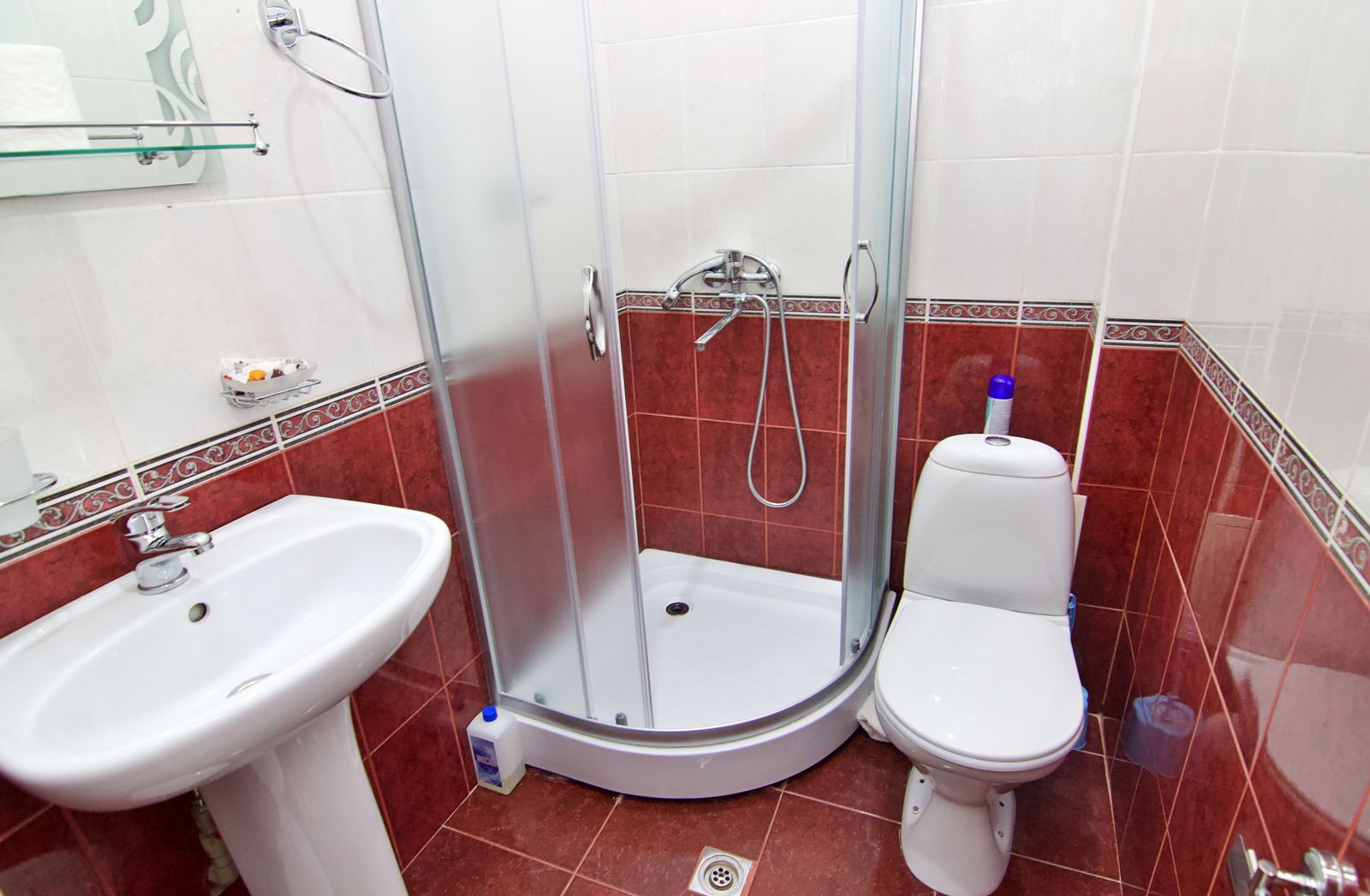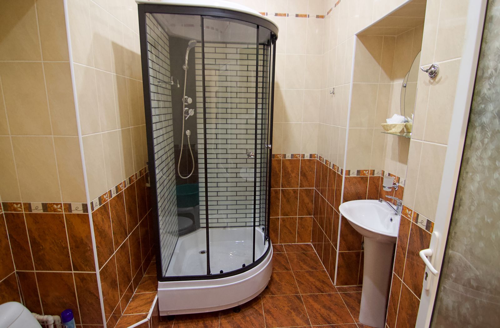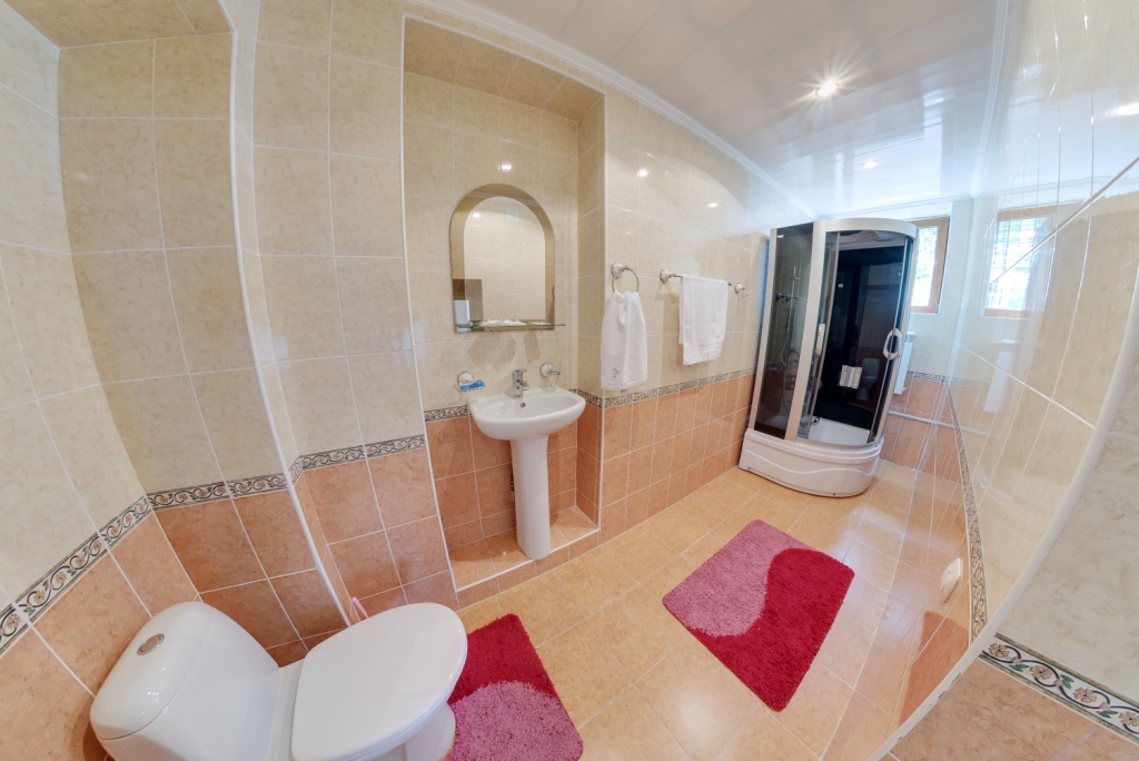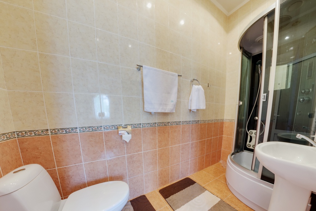 Санузел: с душевой кабиной, туалетные принадлежности, фен.