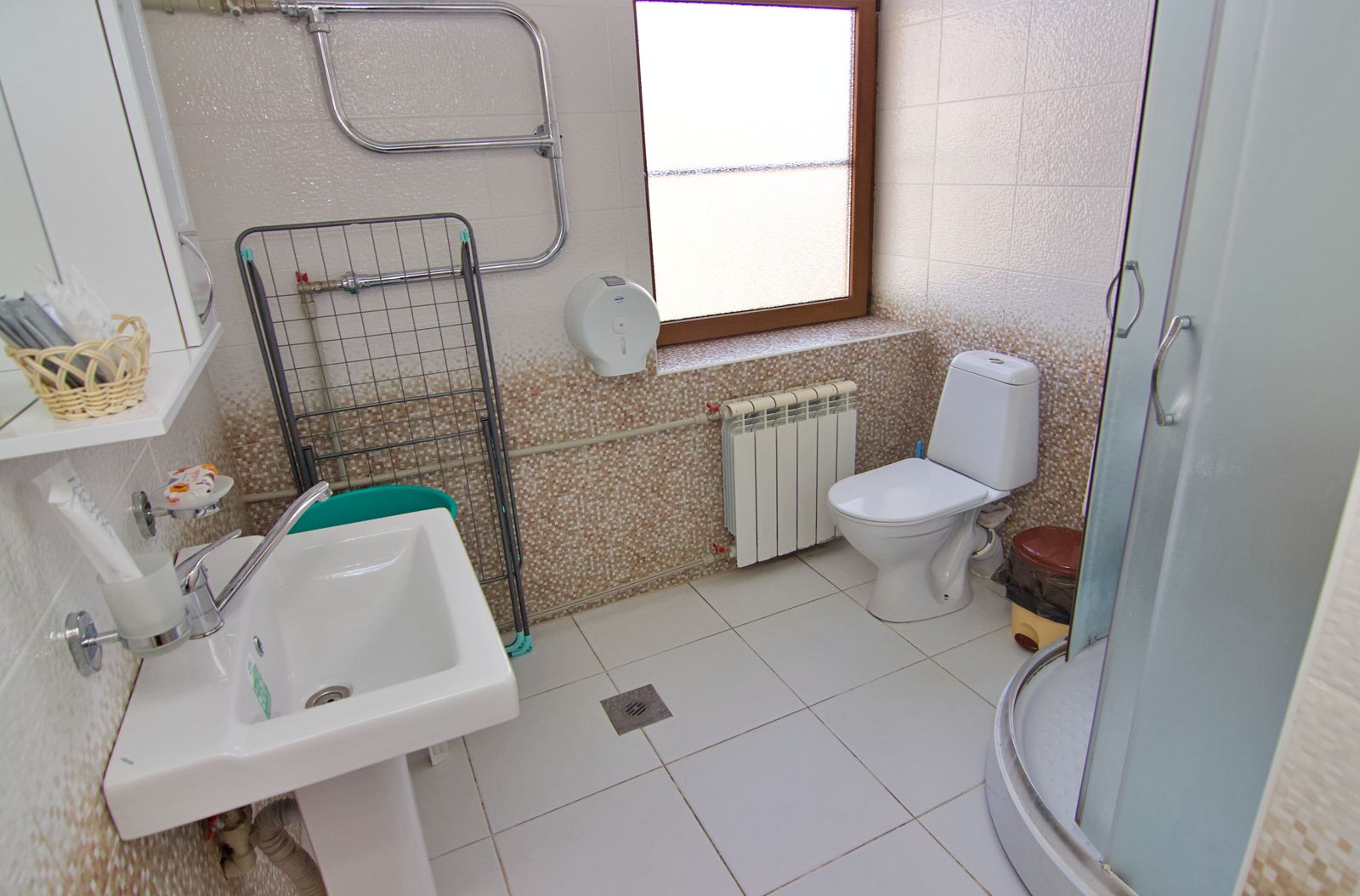 Санузел: с душем, туалетные принадлежности, фен.