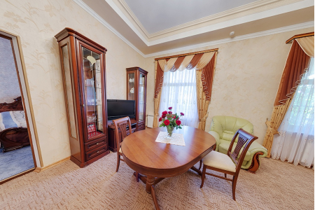 Камерный формат отдыха: вместимость всего 90 человек, корпуса соединены теплыми переходами, главное здание — бывший Дом архитектора Уптона, построен в 1850 году