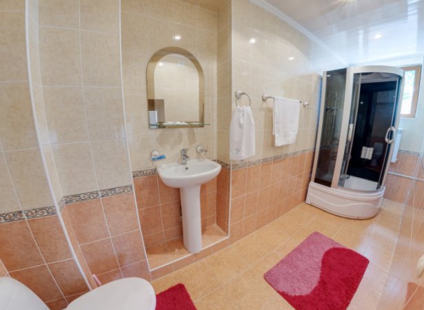 Санузел: с душевой кабиной, туалетные принадлежности, фен.