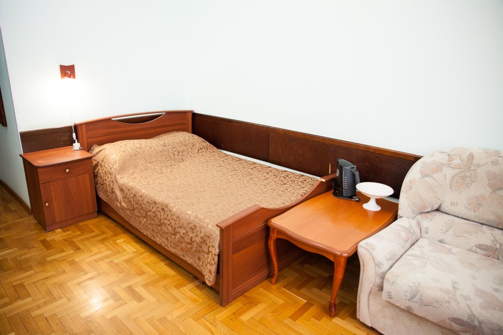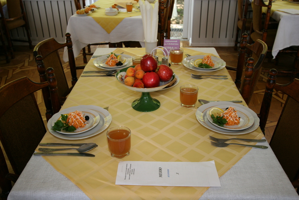 Бювет: на территории доступна минеральная вода «Славяновская» из Железноводска, «Ессентуки-2» и «Ессентуки-4»