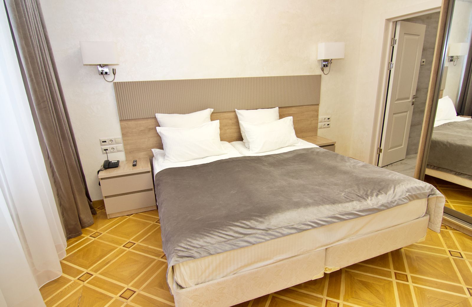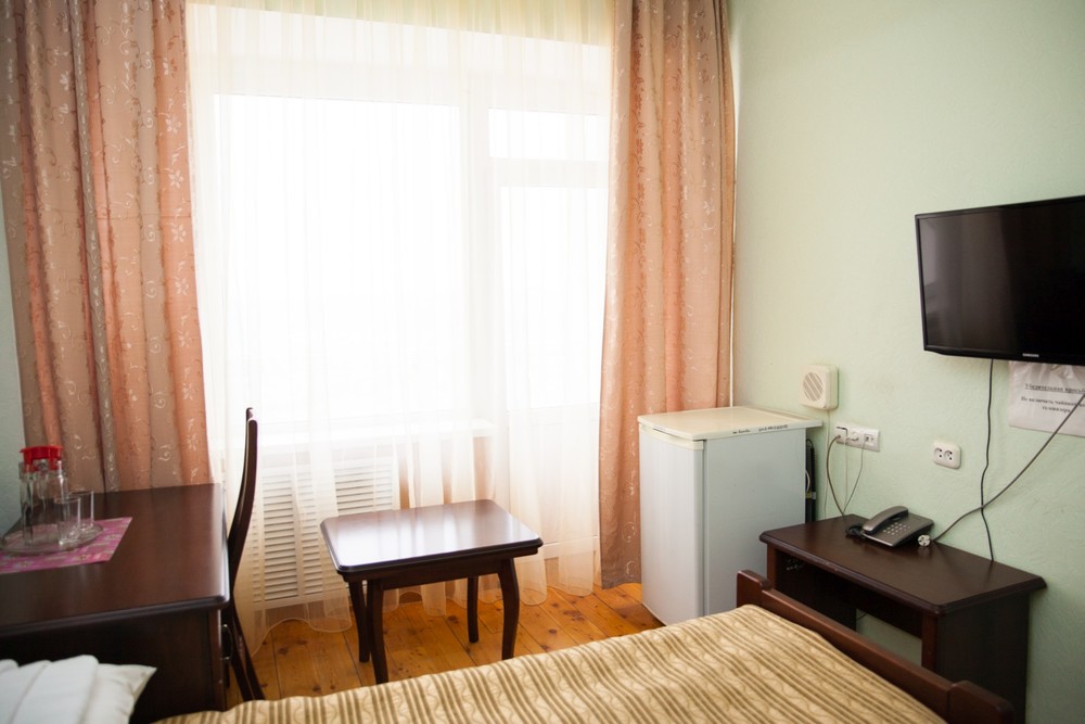Номера: все оборудованы кондиционерами и балконами с видом на Эльбрус и Кавказский хребет