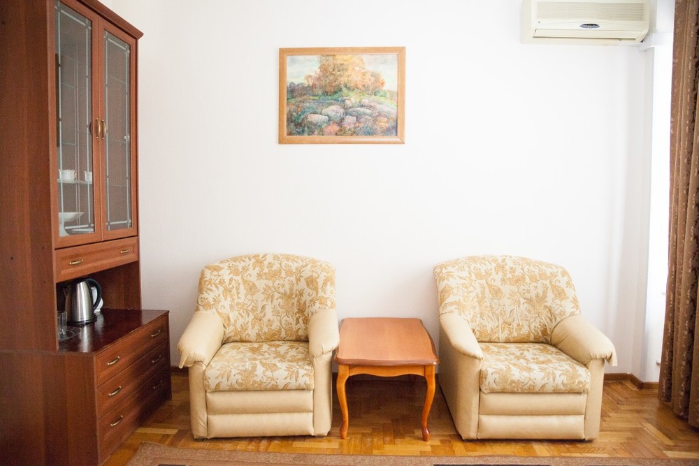 Оборудование: Телевизор, холодильник, кондиционер (сплит-система), телефон, фен, чайные наборы, настольные лампы.