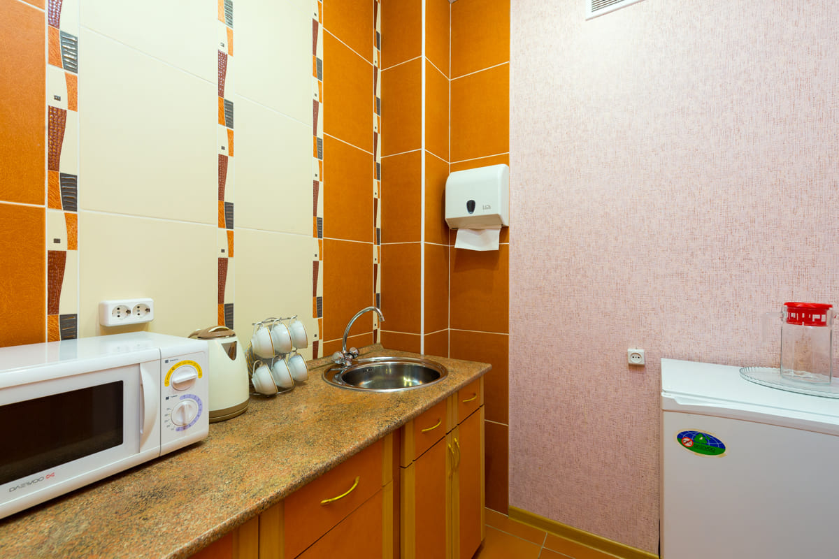Оборудование: телевизор ЖК, холодильник, чайный набор посуды, электрочайник.
