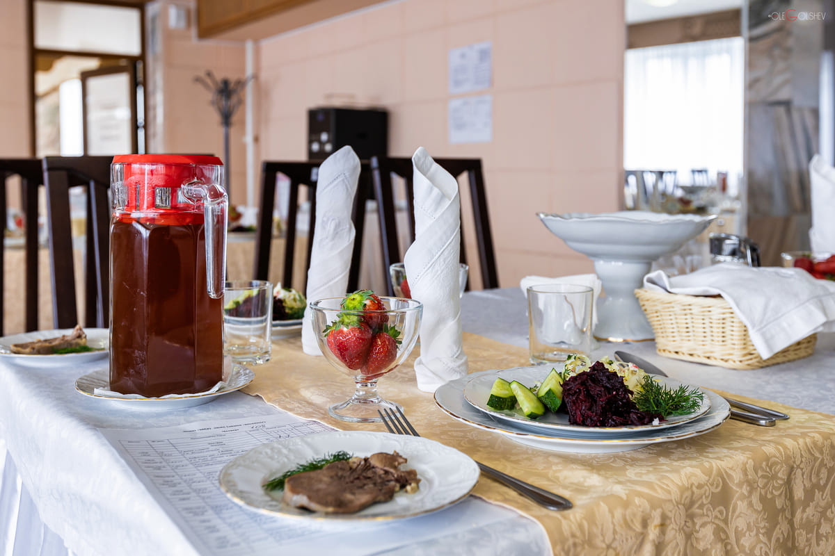 Отдыхаем здесь не первый раз, обслуживание хорошее. Уборка ежедневная, замена полотенец каждые 3 дня. Персонал вежливый, замечания стараются сразу устранить (часы отставали на 10мин.). Процедуры проходили по времени, медсестры корректны, делают свою работу качественно. Доктор при заезде внимательно тебя выслушивает, какие-то процедуры можно заменить согласно нашим диагнозам и оплате наших денег и предъявлению ССК. Питание диетическое. У нас был общий стол, заказное меню, элементы шведского стола (набор овощей. На мой взгляд, в прошлом году вкуснее готовили, но иногда хотелось проверить наличие мяса по раскладке. Кладут меньше нормы. Большое спасибо инструктору в бассейне Анне, большая умница.. На тренажёре инструктор ушла в отпуск, должного внимания заменяющая отдыхающим не хочет (не умеет). Большое спасибо медсестрам из лечебного корпуса. Расположение санатория удобно, близко бювет и радоновые ванны, строго по времени. Большой минус это ступеньки для тех у кого проблемы с суставами. Первые дни эти ступеньки к лечебному корпусу я преодолевала с остановками, постепенно привыкла, к концу отдыха поднималась почти без отдыха на площадках. Будет возможность, приедем ещё.