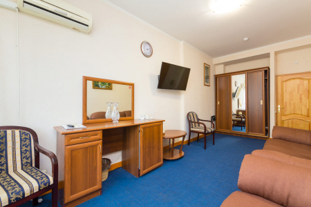 В номерах категорий «Комфорт», «Люкс» и «Апартамент» предоставляются ванные принадлежности, фены, кондиционеры и уютная мебель, включая раскладные диваны и удобные кресла. Гости, проживающие в таких номерах, имеют возможность индивидуального заказа питания в VIP-зале.