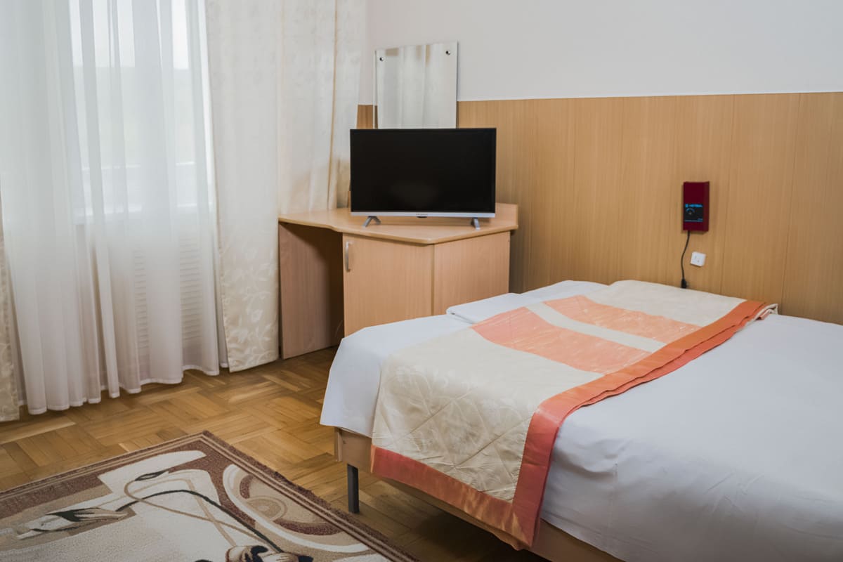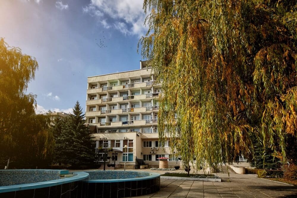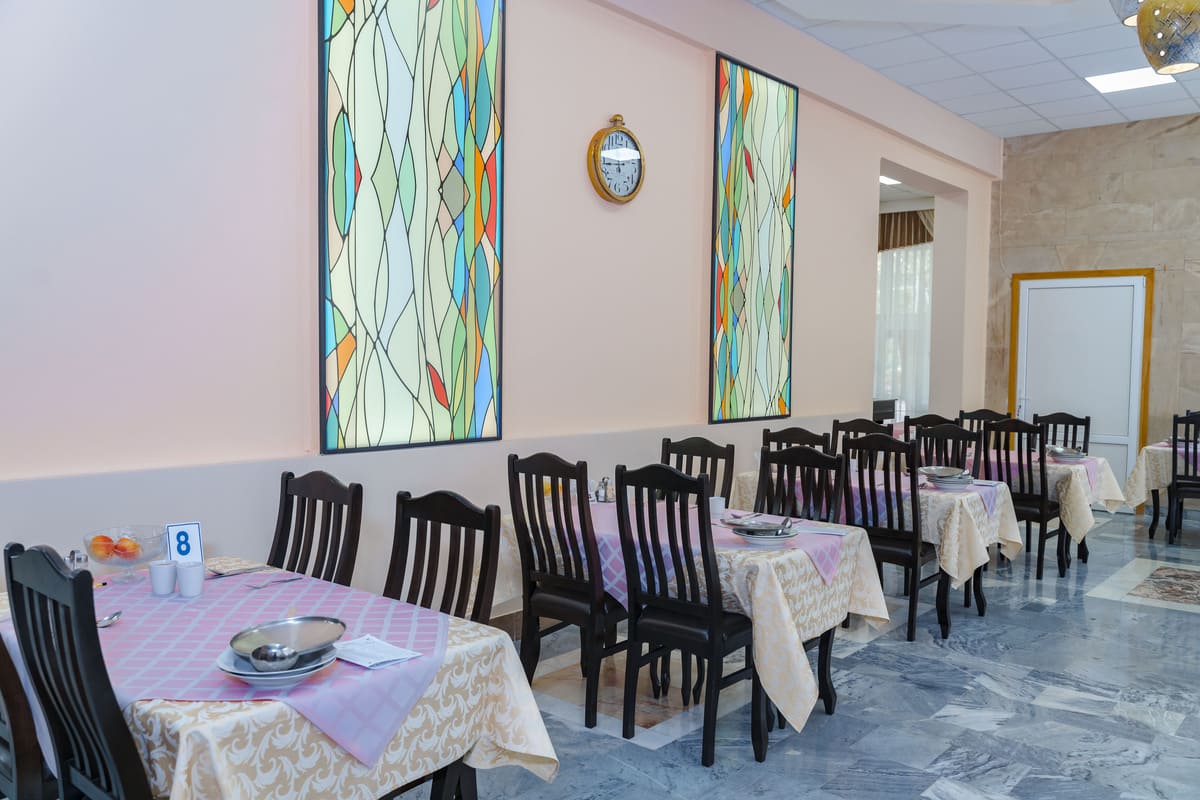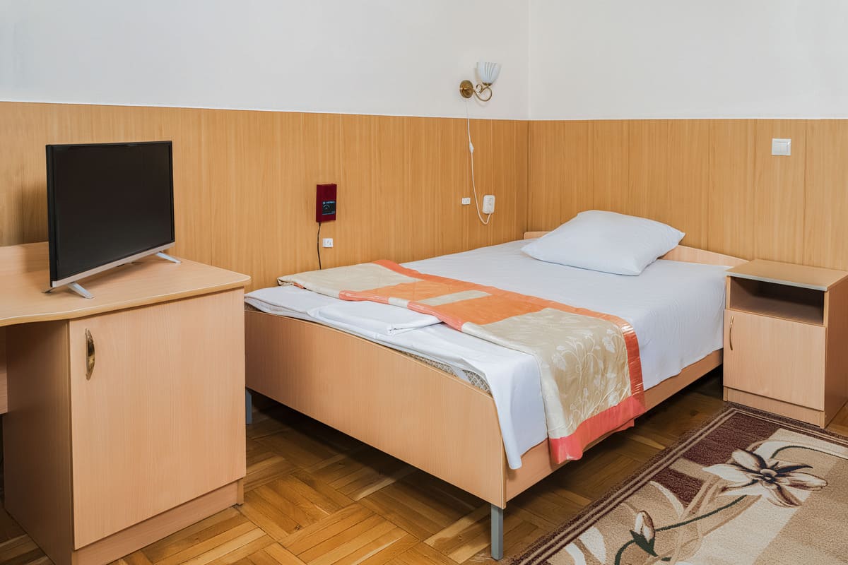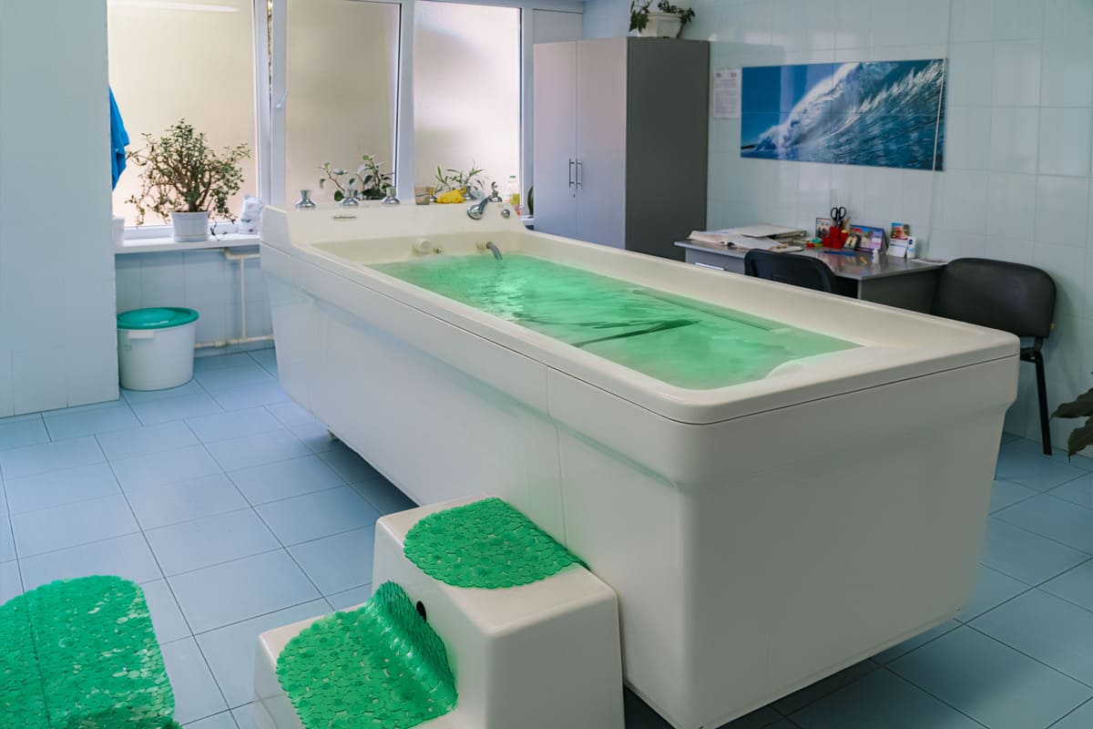 Проживание и лечение в одном здании: посещение процедур, столовой и бассейна, не выходя на улицу.