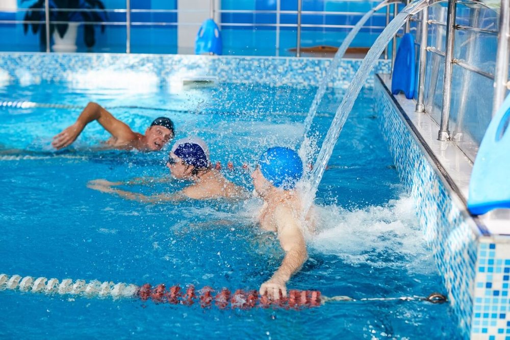 Просторный бассейн с ЛФК: размеры 20×8 м, каскад, занятия аквааэробикой и ЛФК в воде.