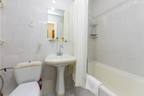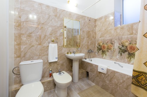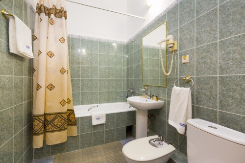 Санузел: биде, с ванной, туалетные принадлежности, фен.