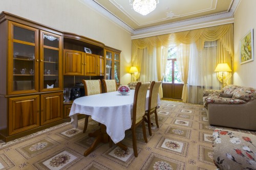 Питание здесь организовано по системе Певзнера, представлены все лечебные основные диеты. Рацион назначается врачом в зависимости от заболеваний постояльца.