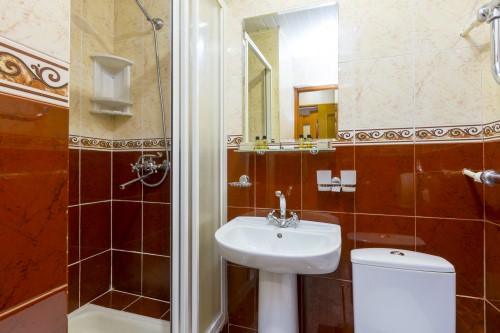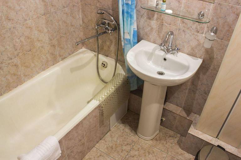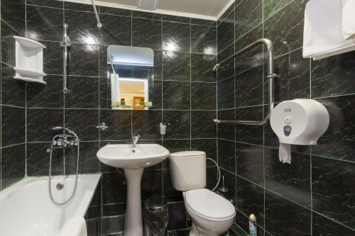 Санузел: с ванной или душевой кабиной, туалетные принадлежности, фен.