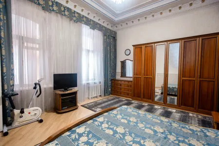 Оборудование: Телевизор, холодильник, электрочайник, комплект посуды, телефон, сейф, Wi-Fi, фен, утюг (на этаже).