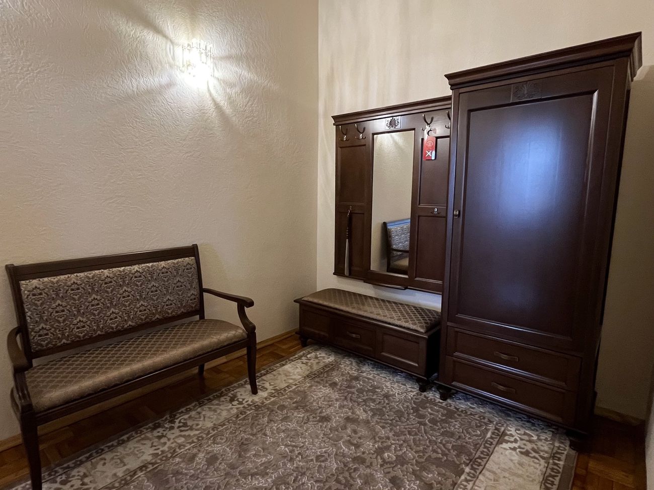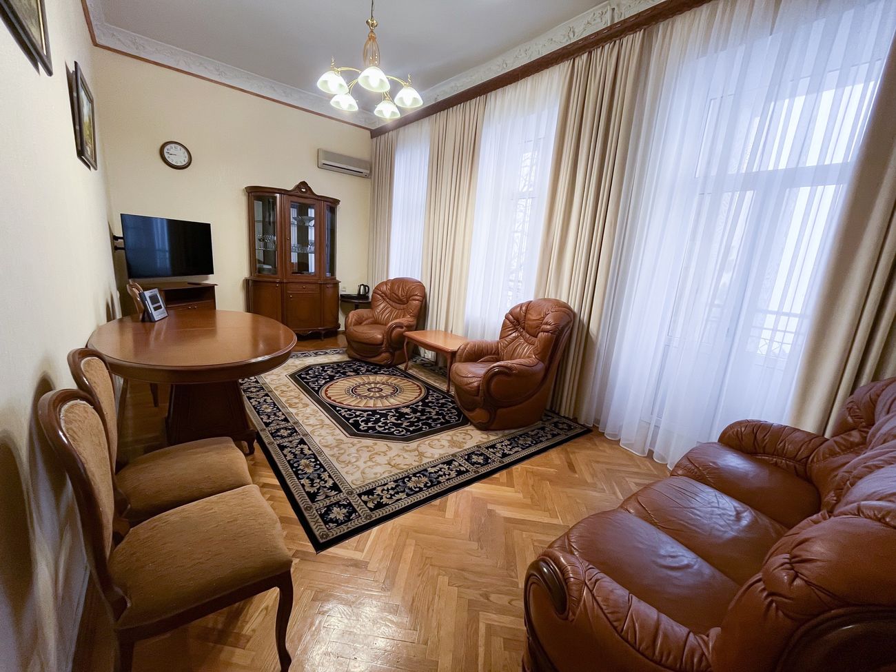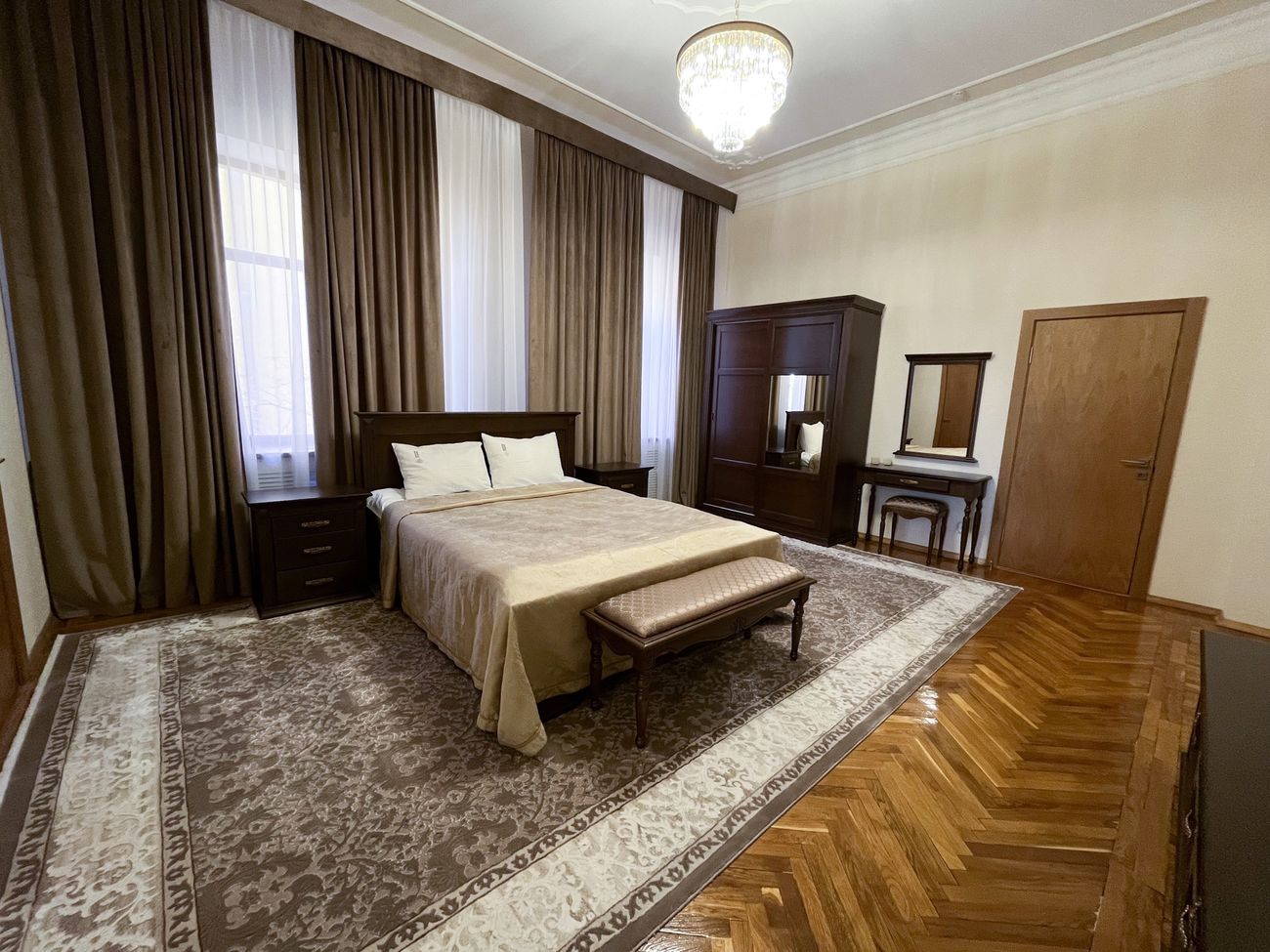 Оборудование: Телевизор, холодильник, электрочайник, комплект посуды, телефон, сейф, Wi-Fi, фен, утюг (на этаже).