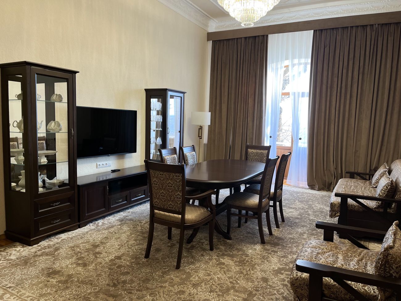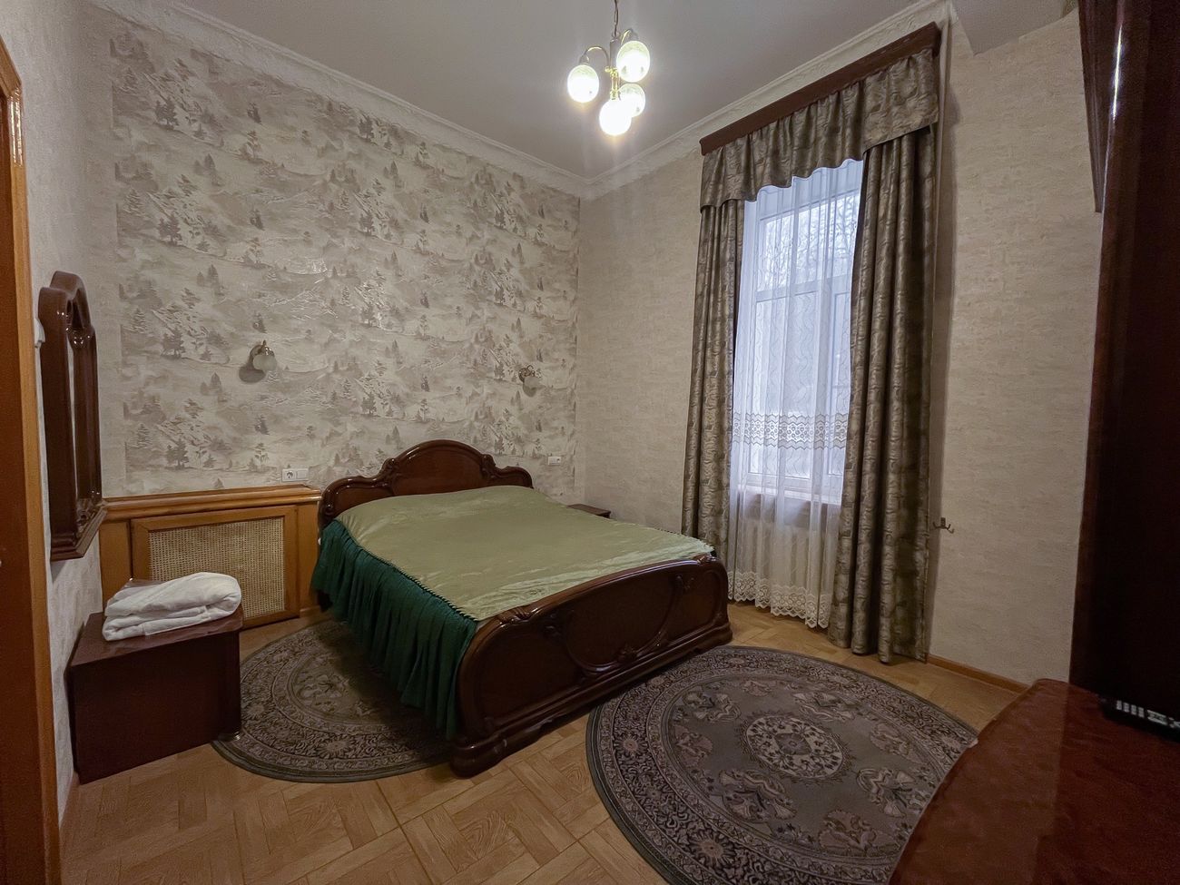 Сервис: Питание и лечение включено, соединение с главным корпусом через отапливаемый переход, доступ к танцевальному залу, тренажерному залу, бильярдной, бару, детской комнате, утюг на этаже.