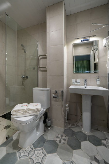 Доступная среда: полностью оборудован для гостей на колясках в номерах, на территории и в столовой