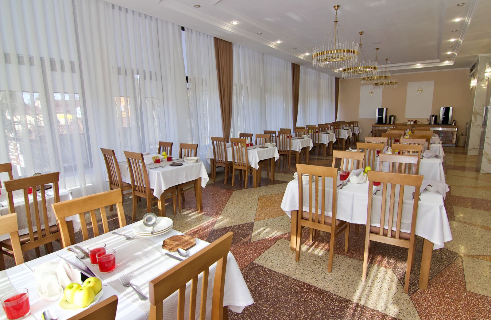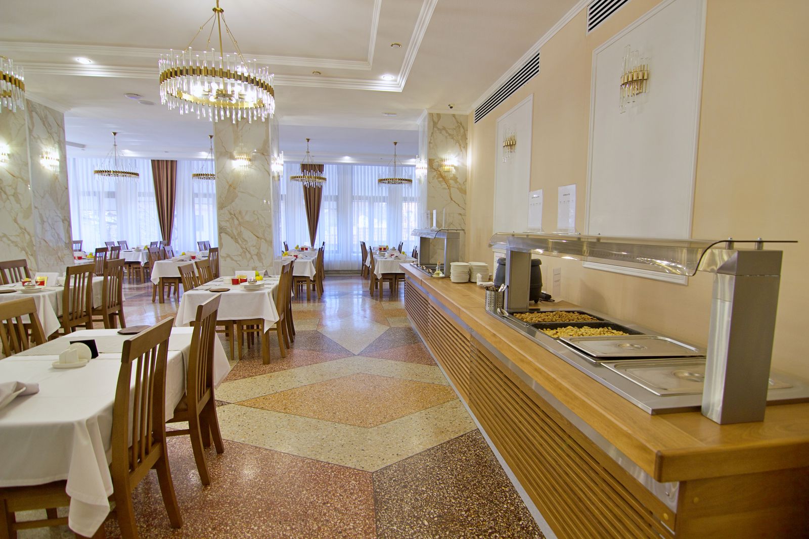 В состав курортного режима санатория входит предоставление диетического питания, доступного для отдыхающих в местной столовой. Система заказа блюд дает возможность выбора из различных кухонь, включая диетическую, вегетарианскую, кавказскую, традиционную и постную. Рацион включает низкокалорийные, белковосодержащие, нежирные, кисломолочные продукты, свежие фрукты и овощи. Кроме того, специалисты здравницы составляют специальное меню для гостей, страдающих диабетом.
