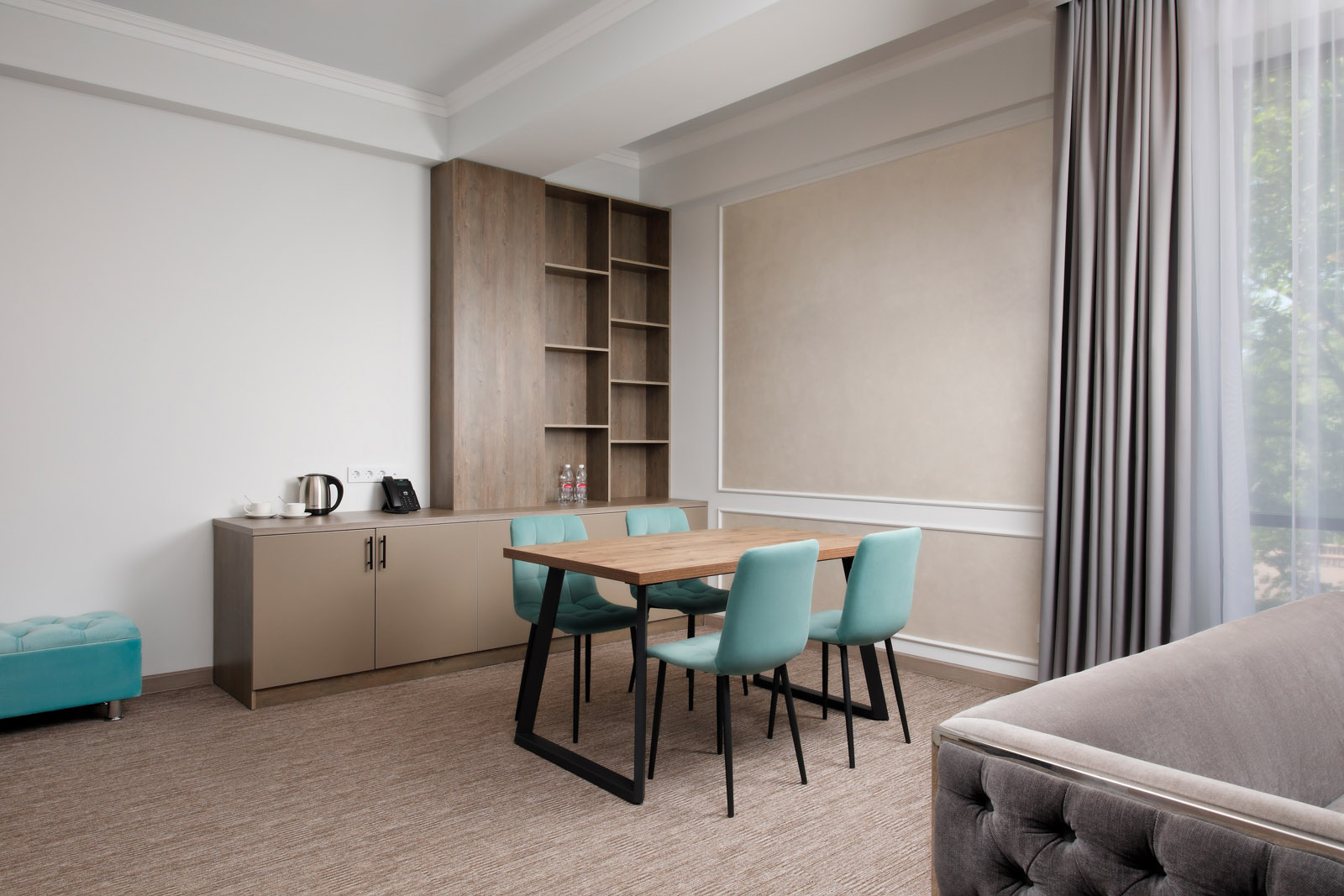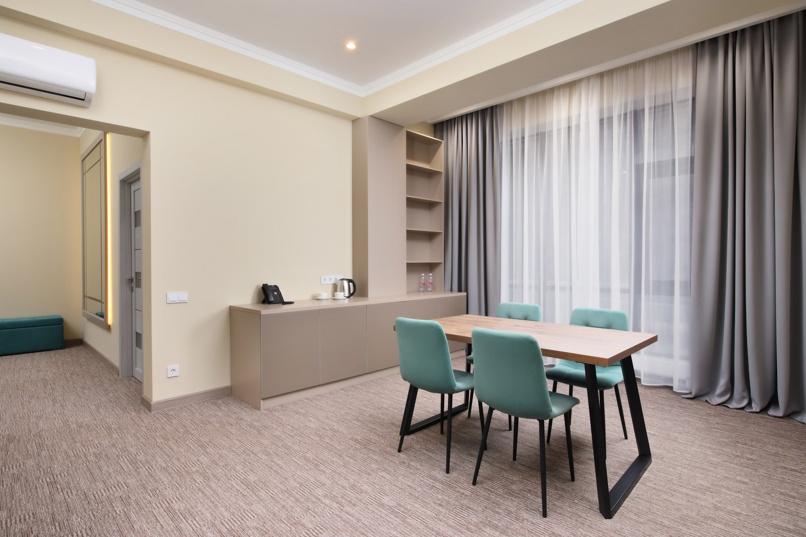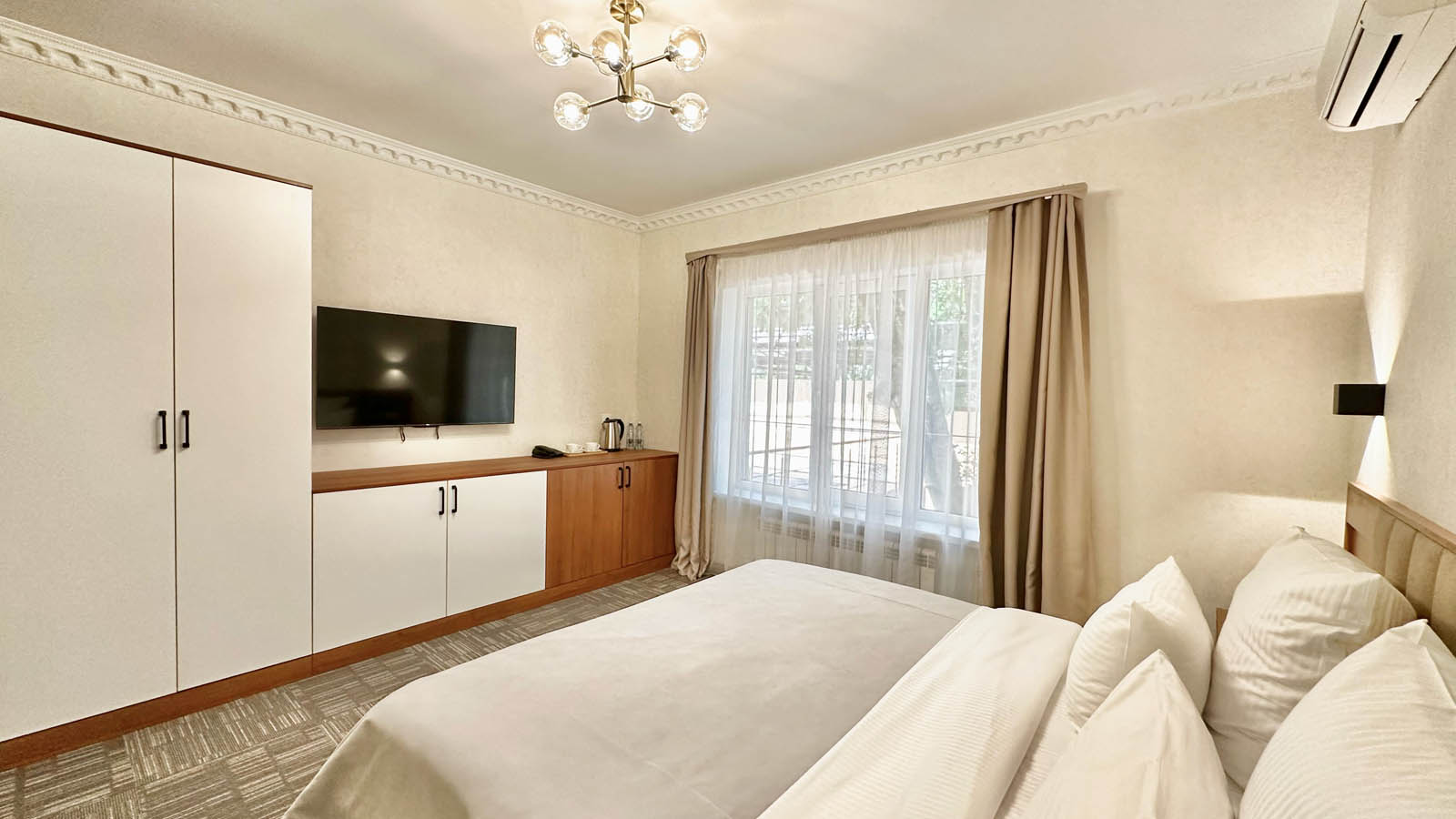 Оборудование: кондиционер, сейф, телевизор, холодильник, чайный набор посуды, электрочайник.