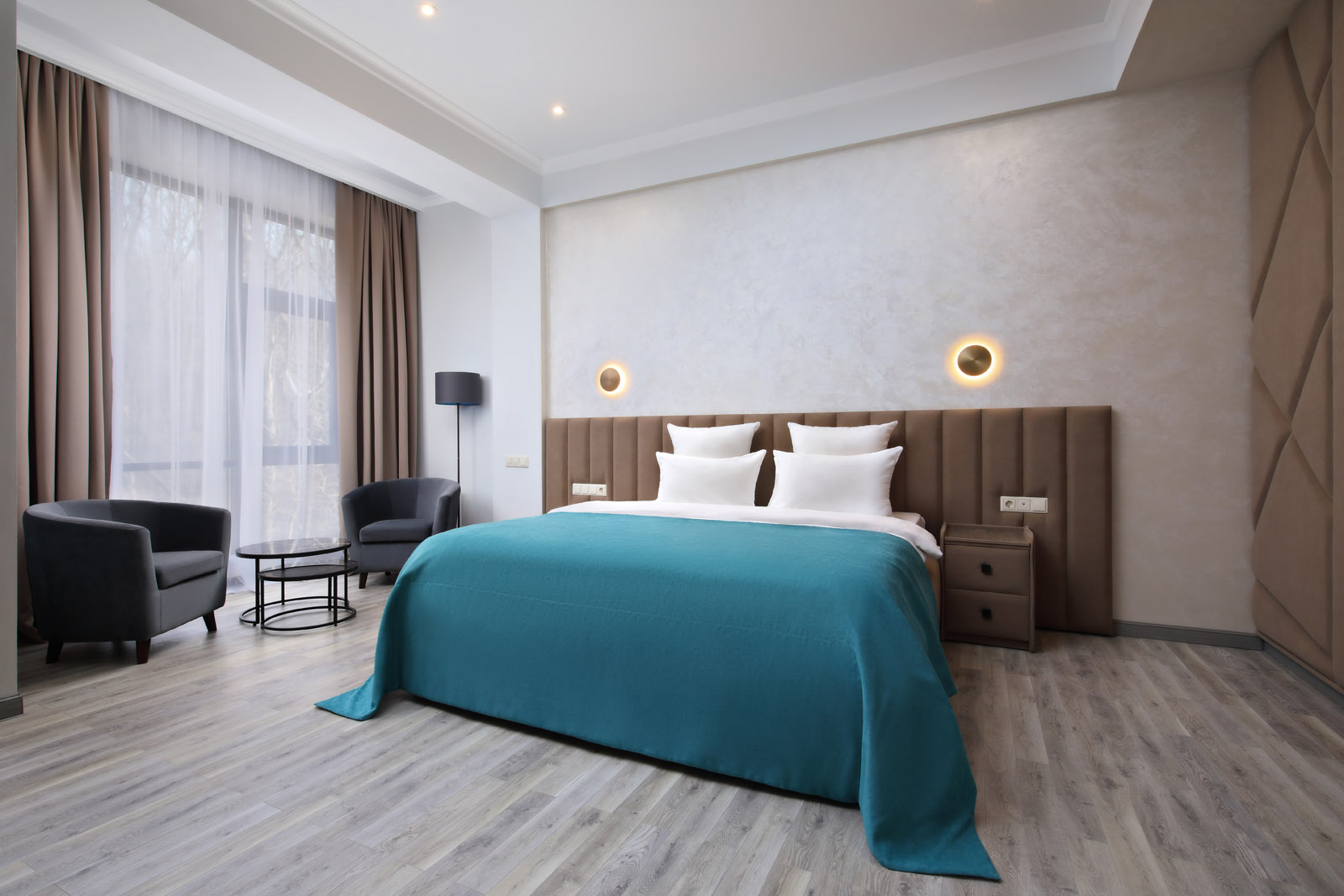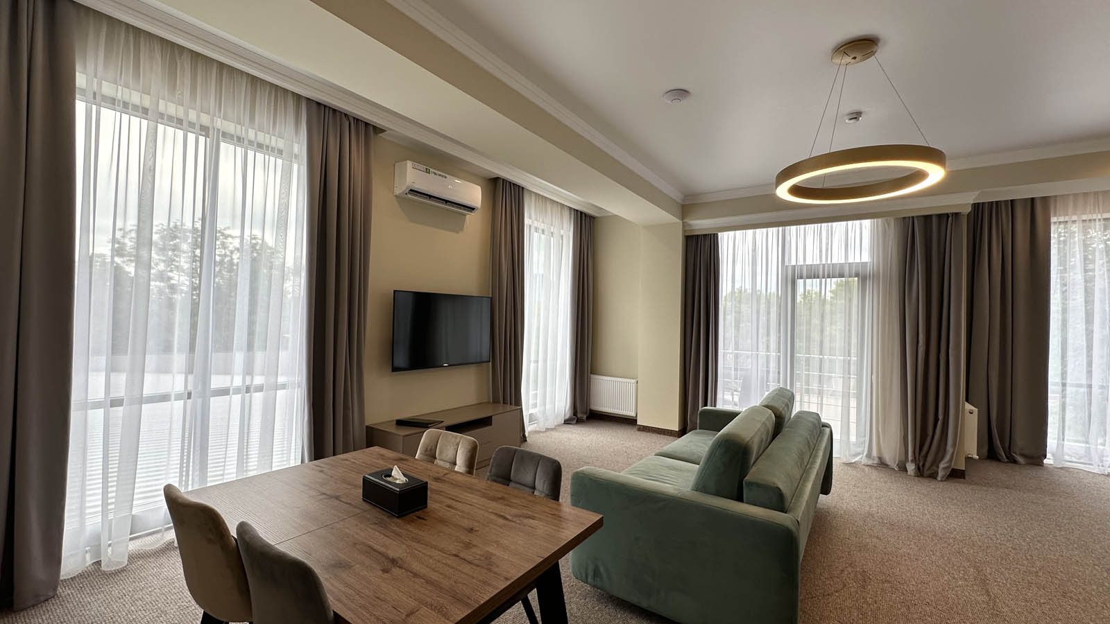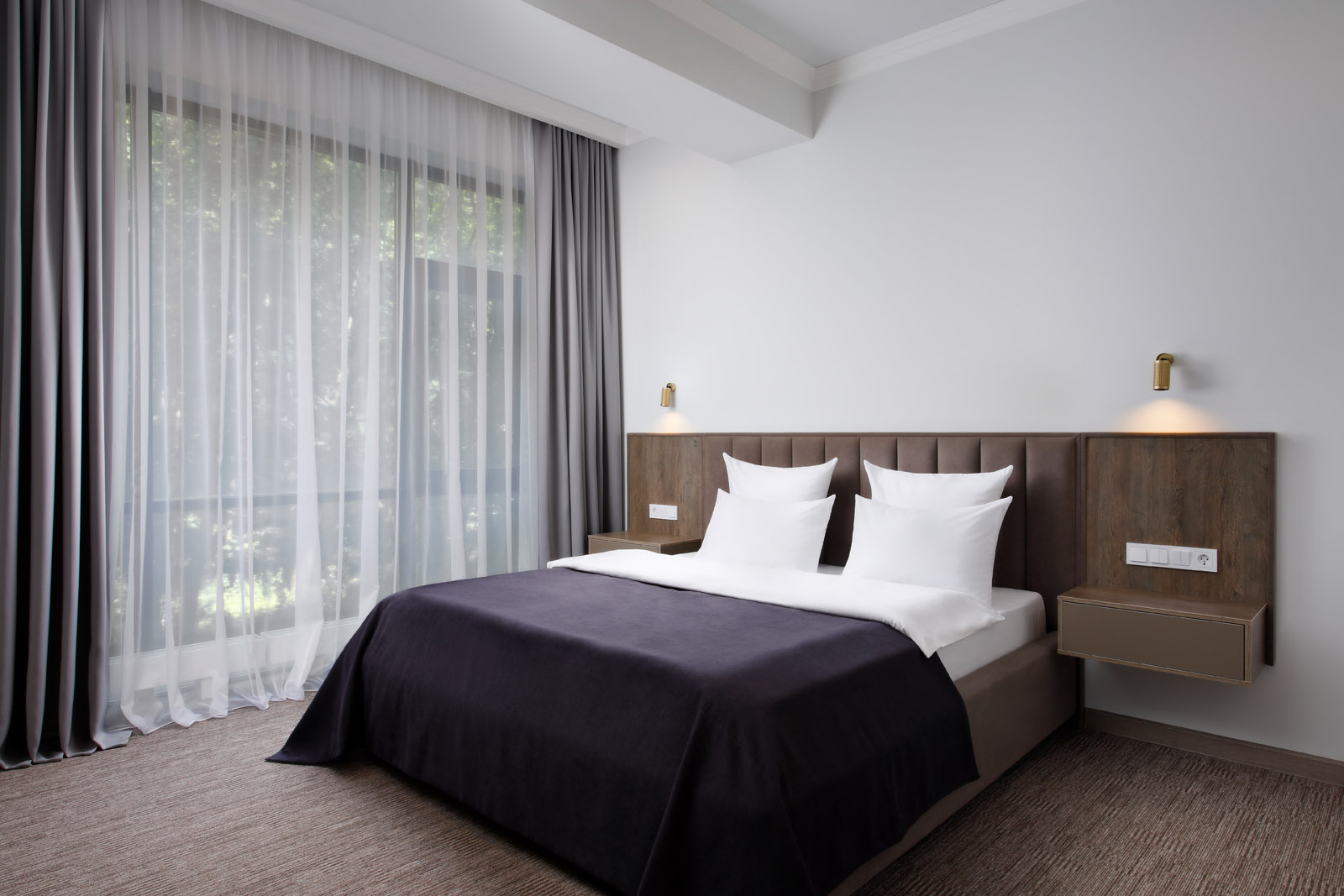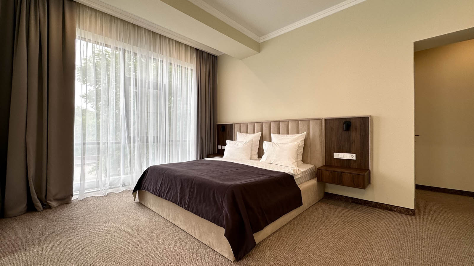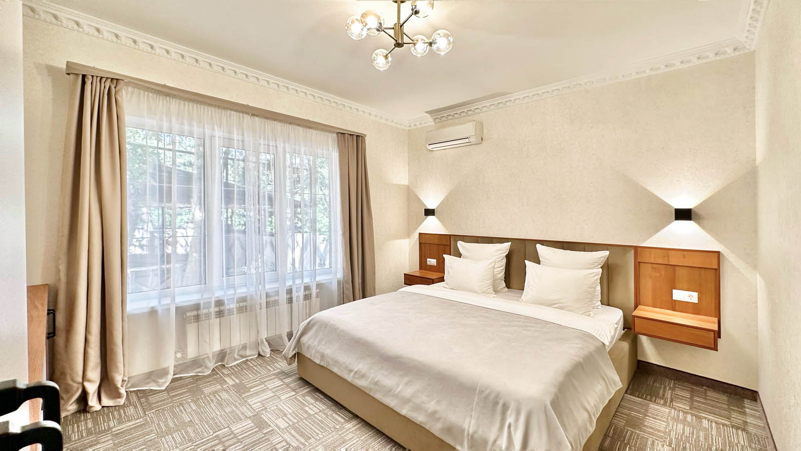Комфортное проживание: хорошая звукоизоляция, ортопедические матрасы, качественный текстиль, блэкаут шторы, сплит-системы