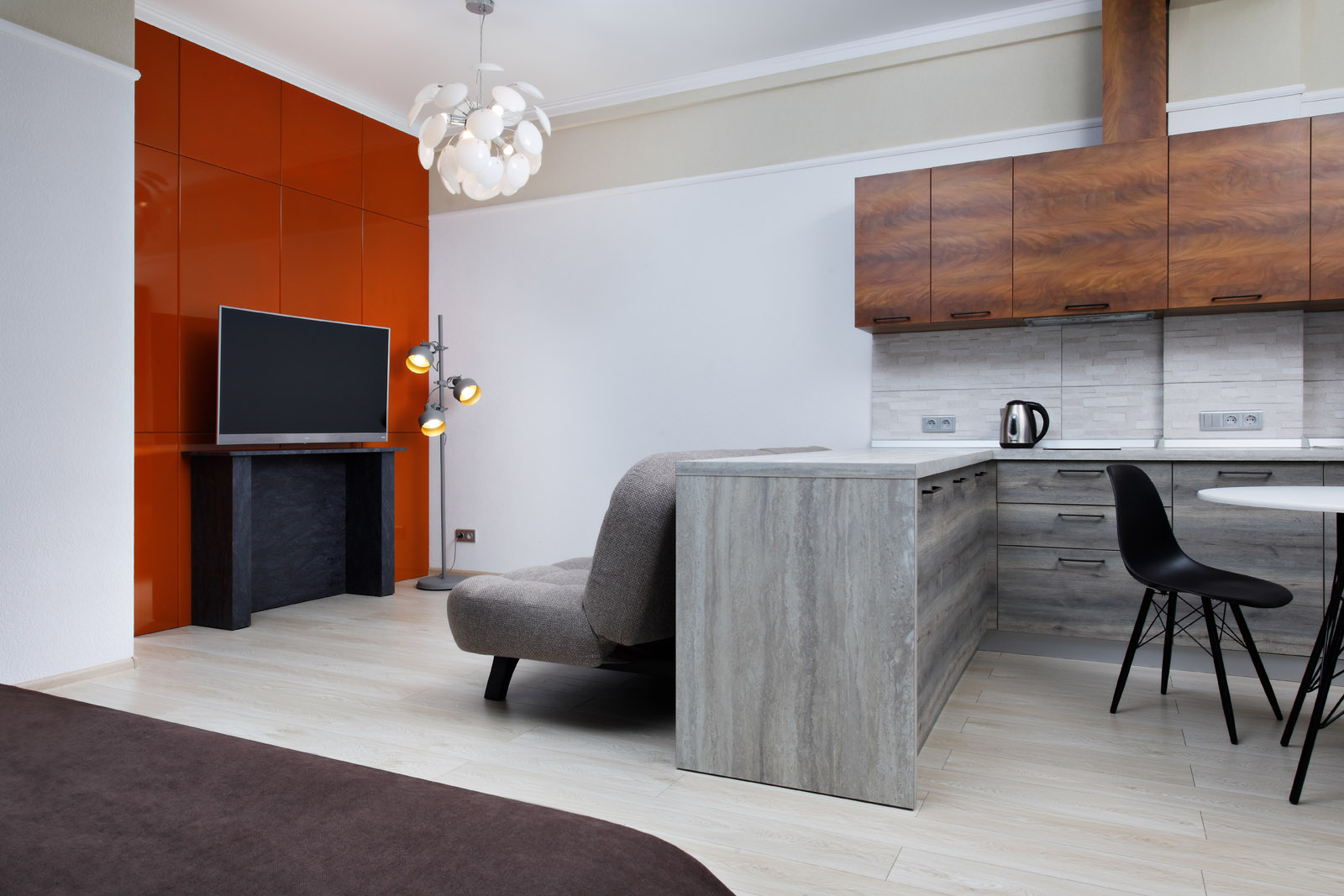 Оборудование: кофемашина, мини-холодильник, набор посуды, сейф, телевизор, утюг.