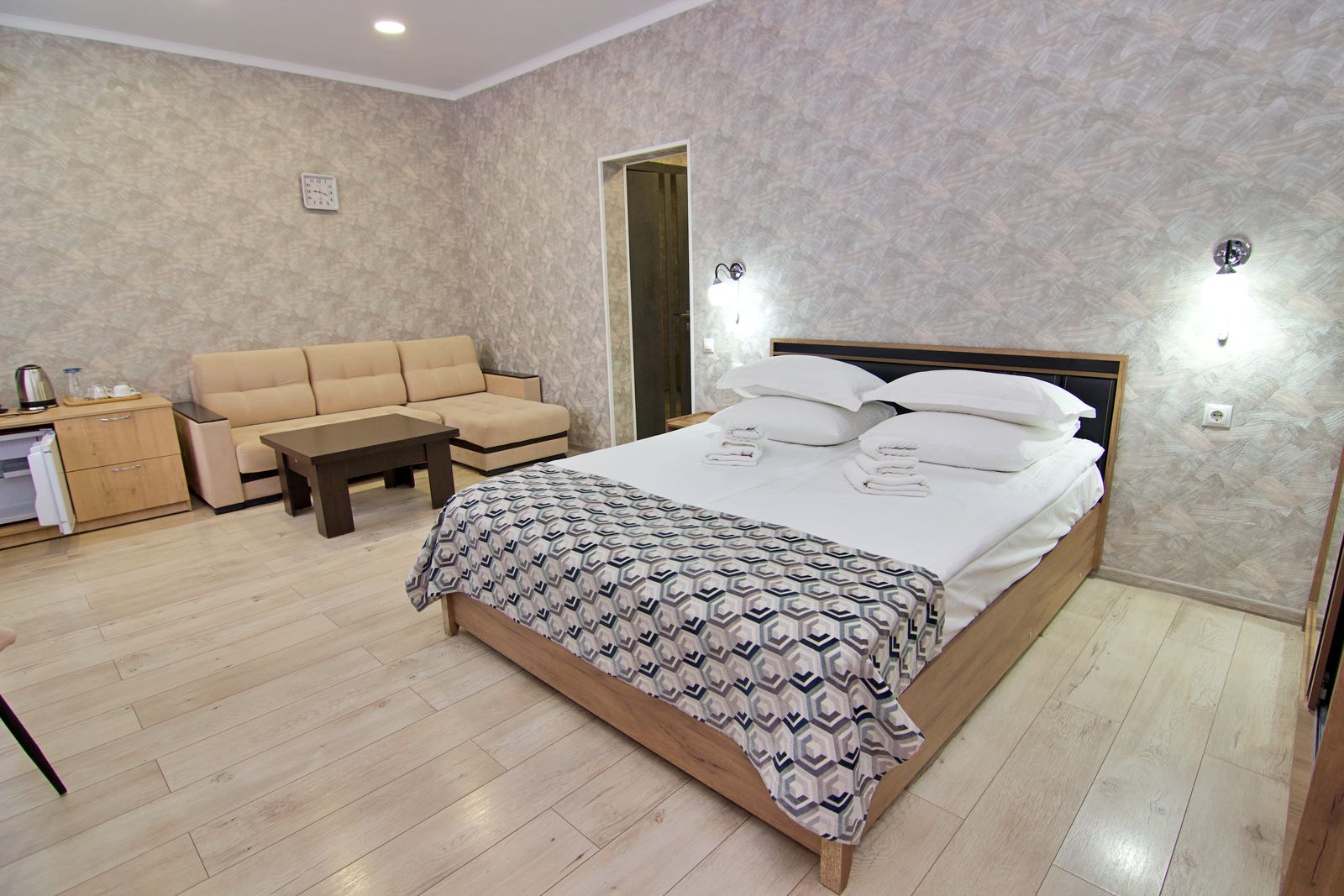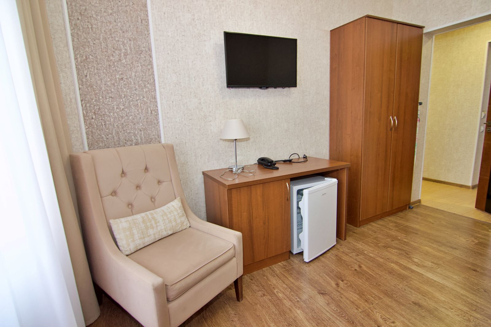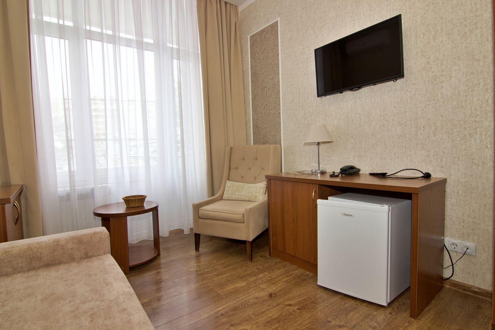 Оборудование: кондиционер, мини-холодильник, сейф, телевизор, телефон, чайный набор посуды, электрочайник.