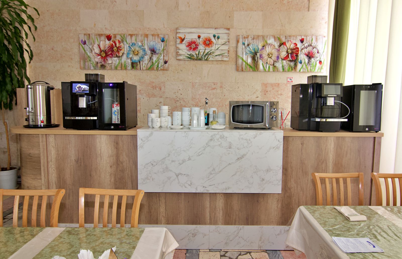 Питание: трехразовое с элементами шведского стола (салат-бар). На завтрак — кофемашины с натуральным кофе