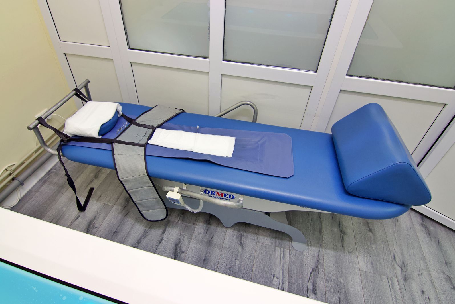 Вытяжение позвоночника: сухое на аппарате «Ормед» и подводное горизонтальное с бишофитом или йодобромной солью