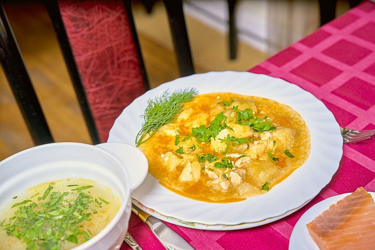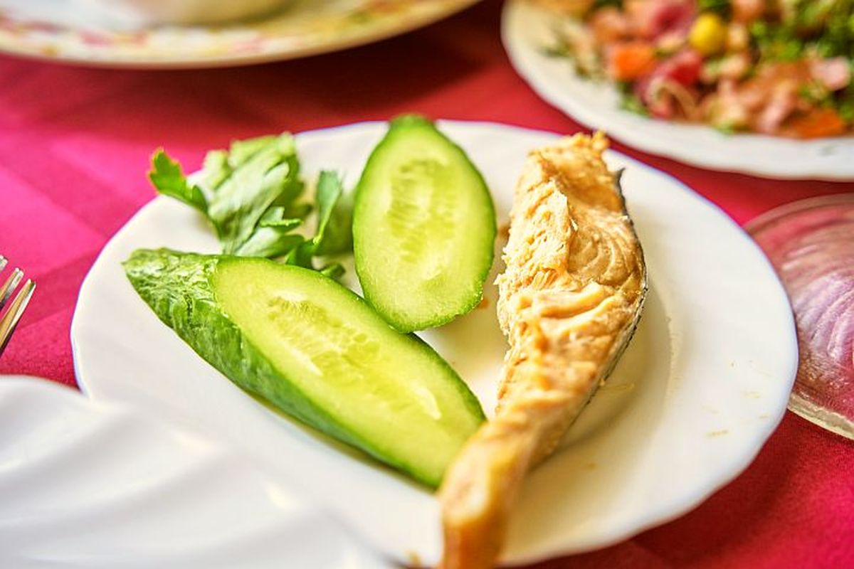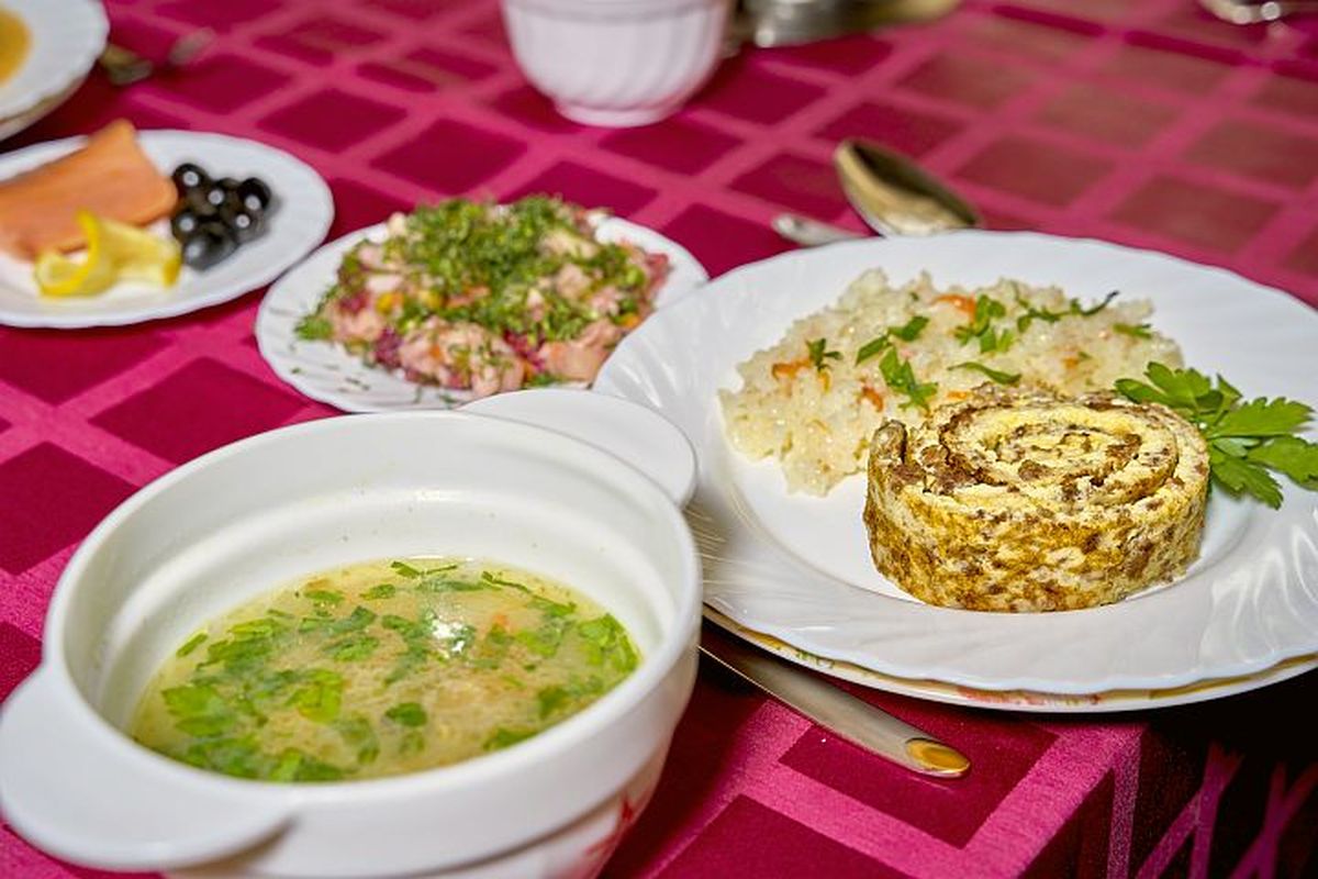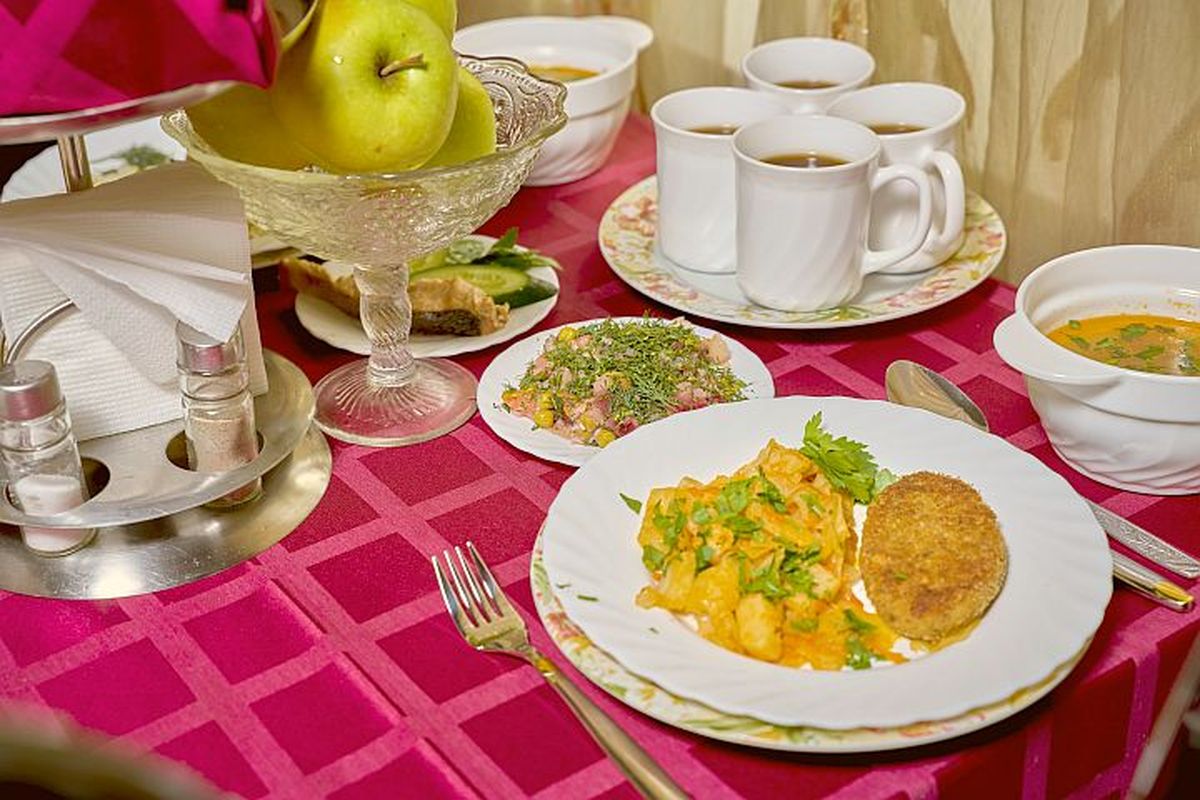 Питание по заказному меню — хорошее, разнообразное, всё свежее и вкусное. Порции щедрые, голодными из столовой не уходили ни разу.