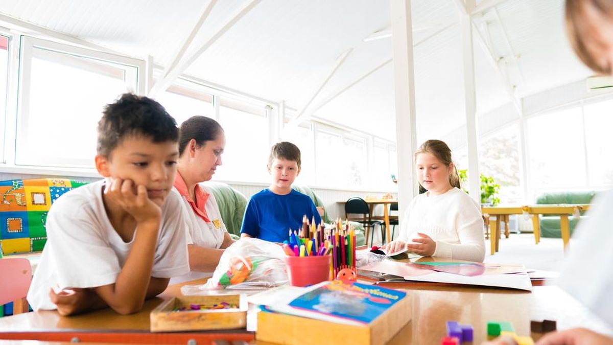 На территории военного детского санатория работает школа, где дети изучают все основные предметы. Это позволяет не прерывать обучение во время курса лечения.