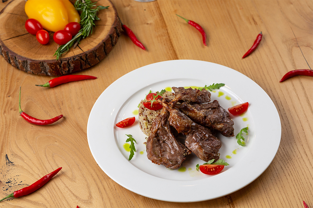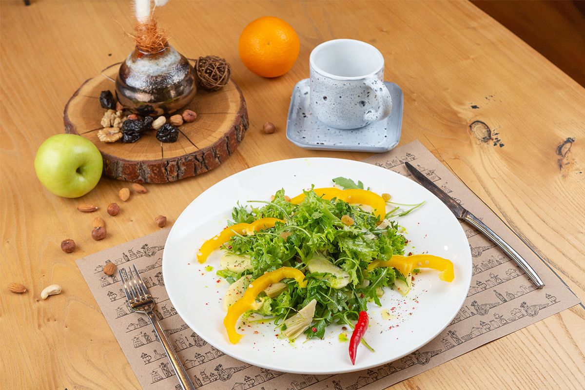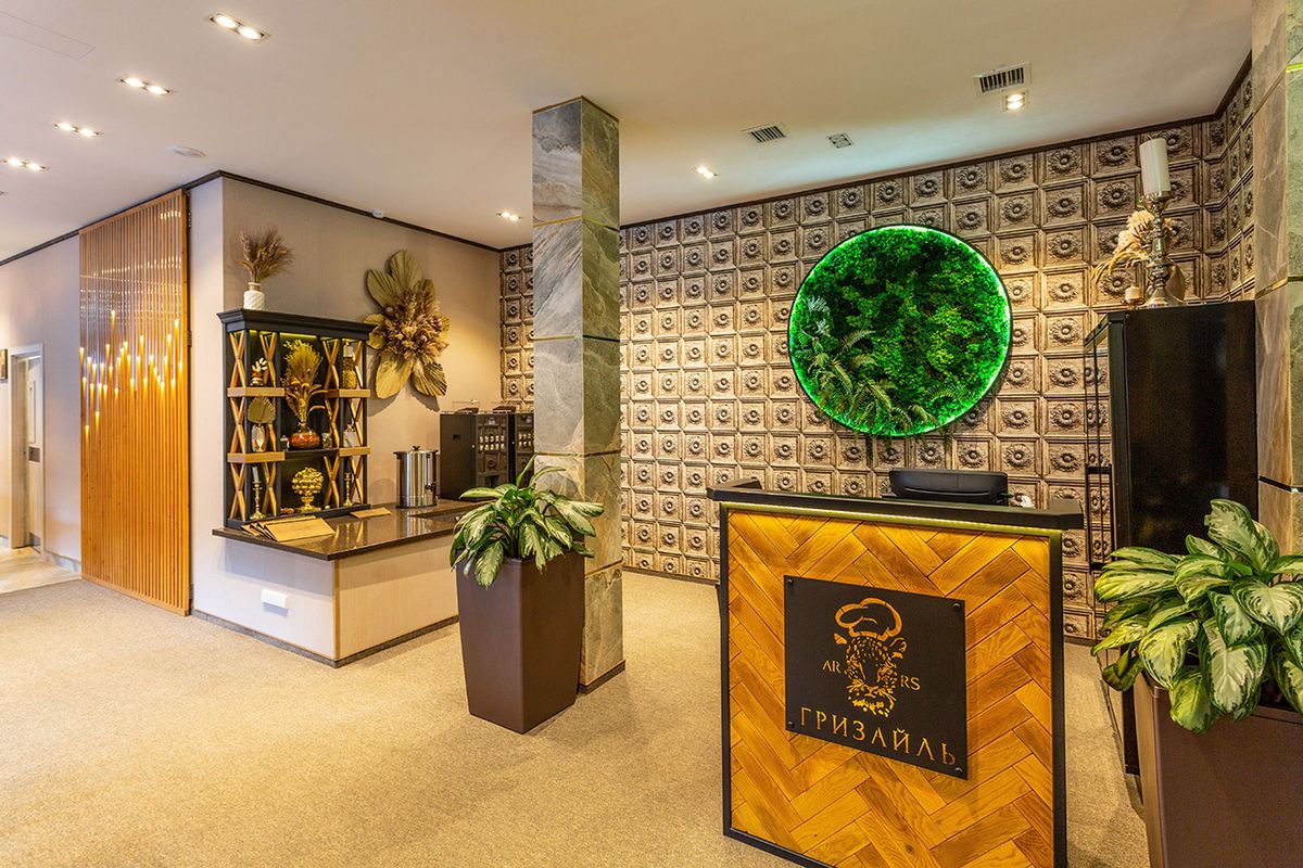 На первом этаже отеля расположен ресторан «Гризайль» с предложением блюд кавказской и европейской кухни. Ресторан предоставляет зал для торжественных мероприятий и летнюю террасу, откуда открываются прекрасные виды на горные склоны.