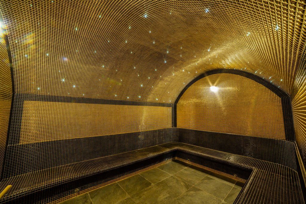 Хаммам — традиционная турецкая баня с умеренным температурным режимом от 35 до 50 градусов Цельсия. Отлично подходит для прогревания позвоночника, мышц и суставов.