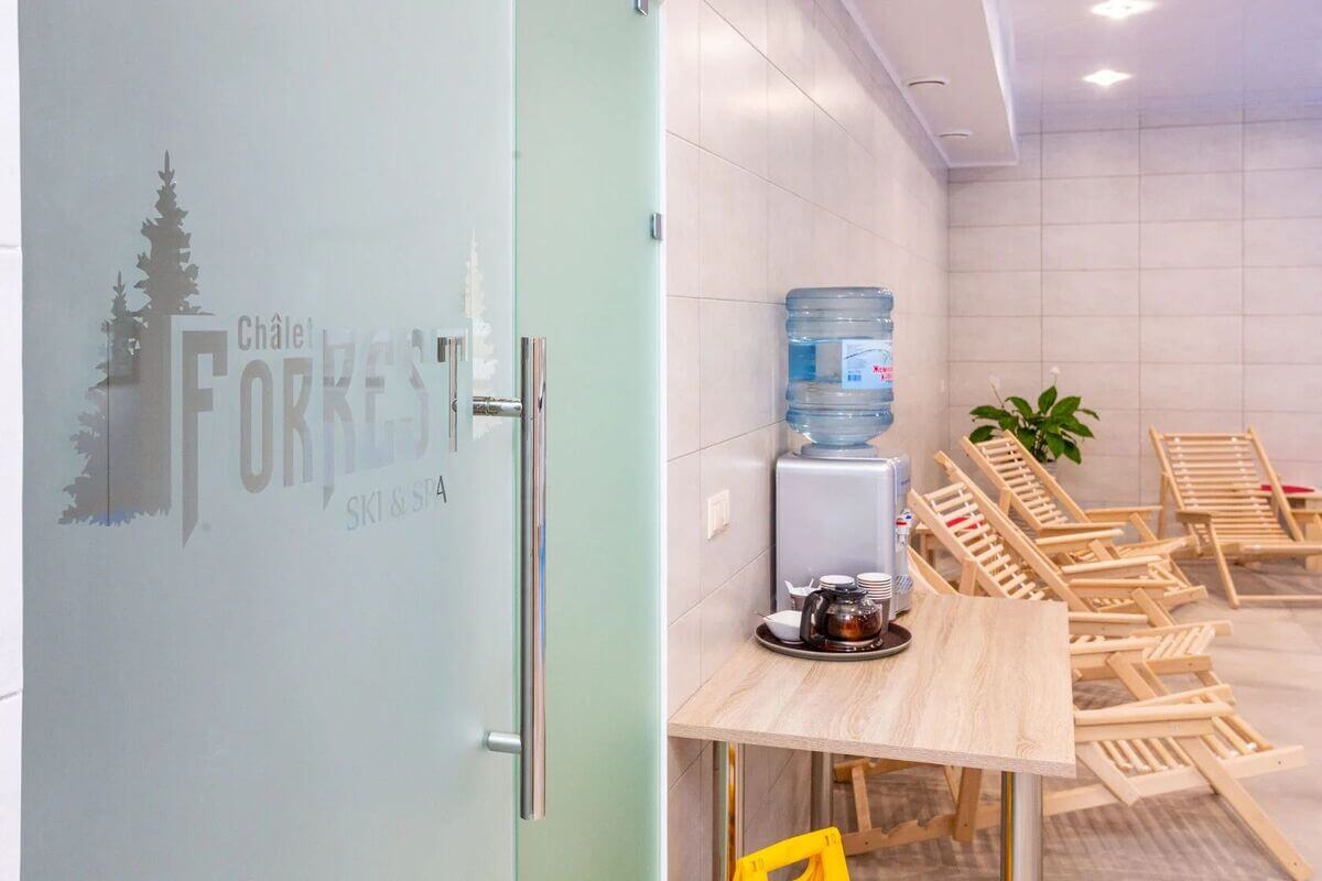 Бассейн «Форрест Шале» размером 3 на 5 метров и глубиной 1,6 метра наполнен прохладной фильтрованной водой. В SPA-зоне установлен подогрев пола для дополнительного комфорта. Гости могут расслабиться на удобных деревянных шезлонгах и насладиться национальным чаем из целебных трав. SPA-зона «Форрест Шале» открыта ежедневно с 17 до 21 часа.