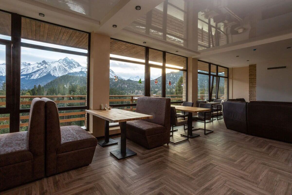 Завтраки в «Forest Chalet» сервируются в зале с камином, откуда открывается великолепный вид. В летнее время гости могут наслаждаться едой на террасе. Вечера в отеле особенно уютны благодаря теплу камина. Проведение времени у огня с бокалом напитка, настольные игры с друзьями или наблюдение за звездами при ясном небе – все это доступно для гостей.