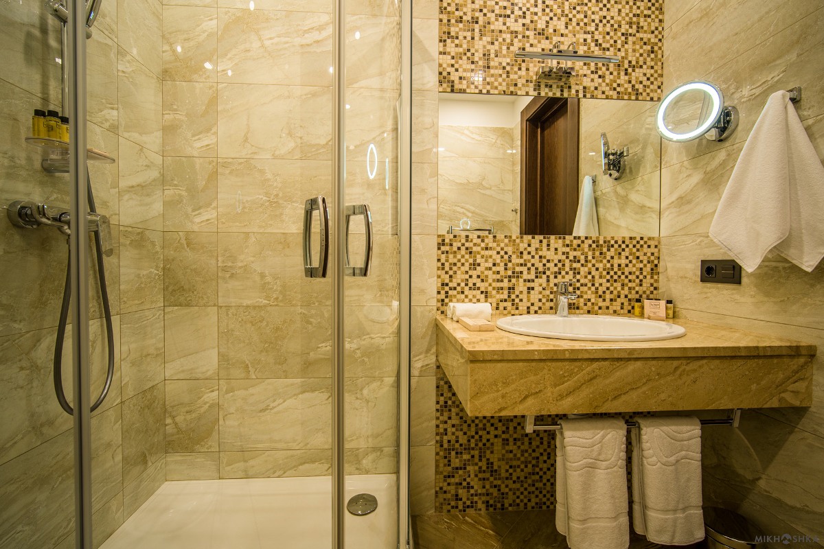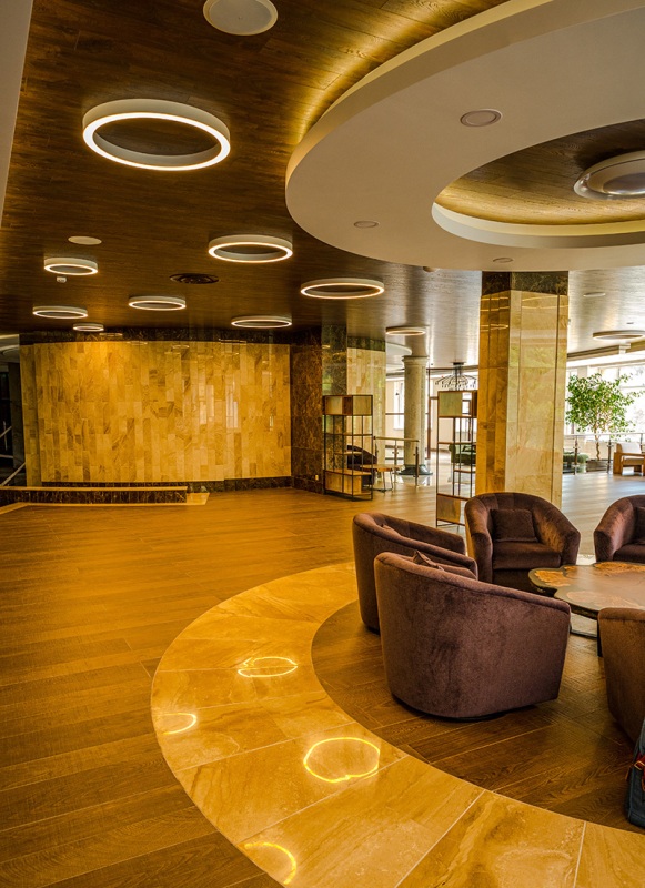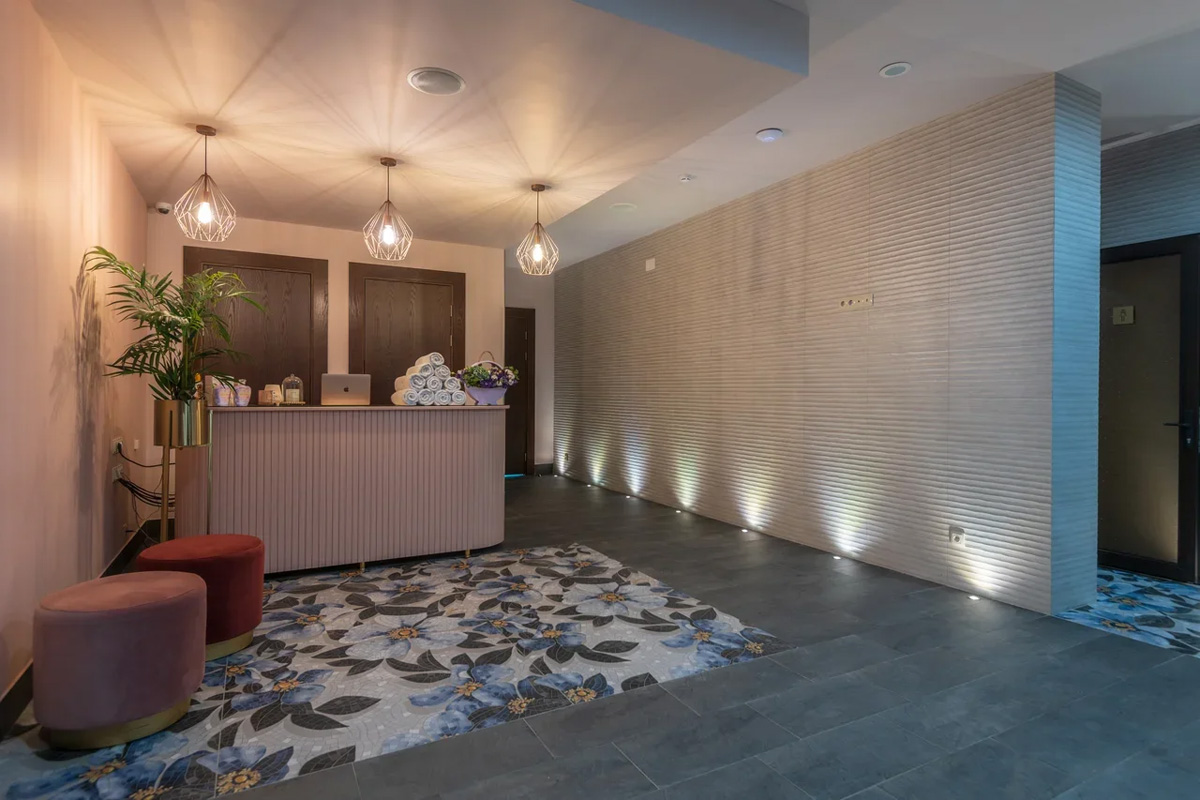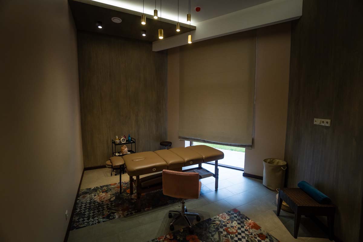 Продуманный SPA-комплекс: современная зона релаксации с полным спектром Спа-ритуалов, хамамом, баней и купелью.