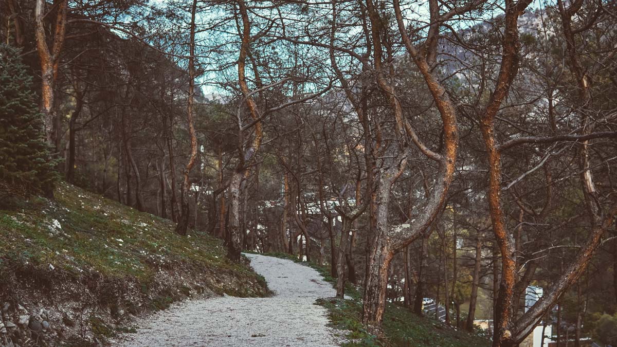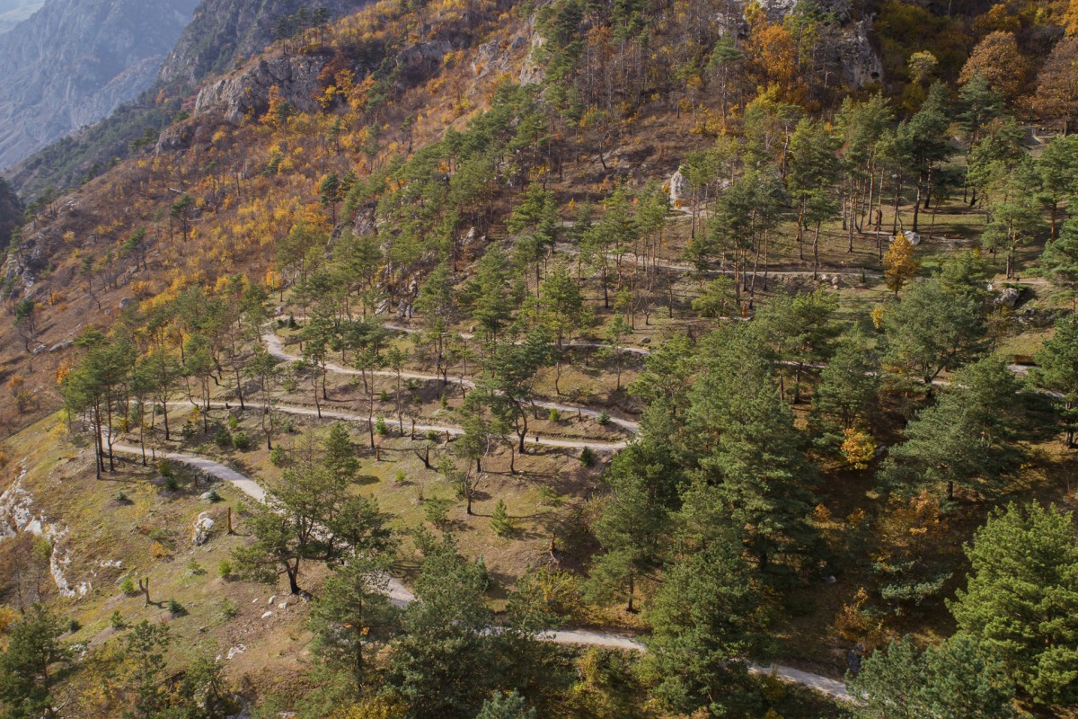 Терренкур на горном склоне: оборудованные маршруты для лечебных прогулок протяженностью 5 км с местами для отдыха.