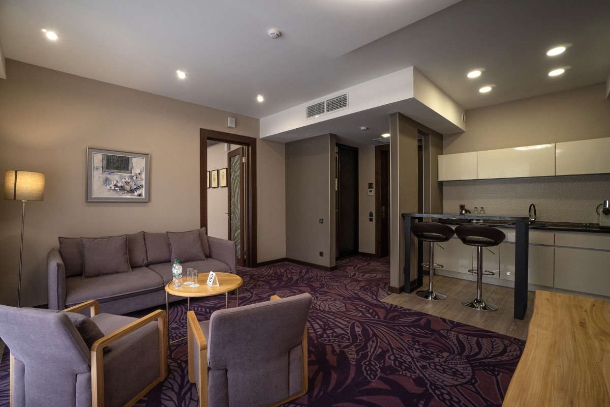 «Forrest Terrace» предоставляет разнообразные номера: стандартные однокомнатные, двухкомнатные люксы, семейные апартаменты и специальные номера для гостей с особыми потребностями. В номерах вас ждет лаконичный стильный интерьер, а также предусмотрены все удобства для комфортного отдыха, включая сплит-систему, собственный душ, кондиционер, телевизор, фен, электрочайник и удобную мебель.