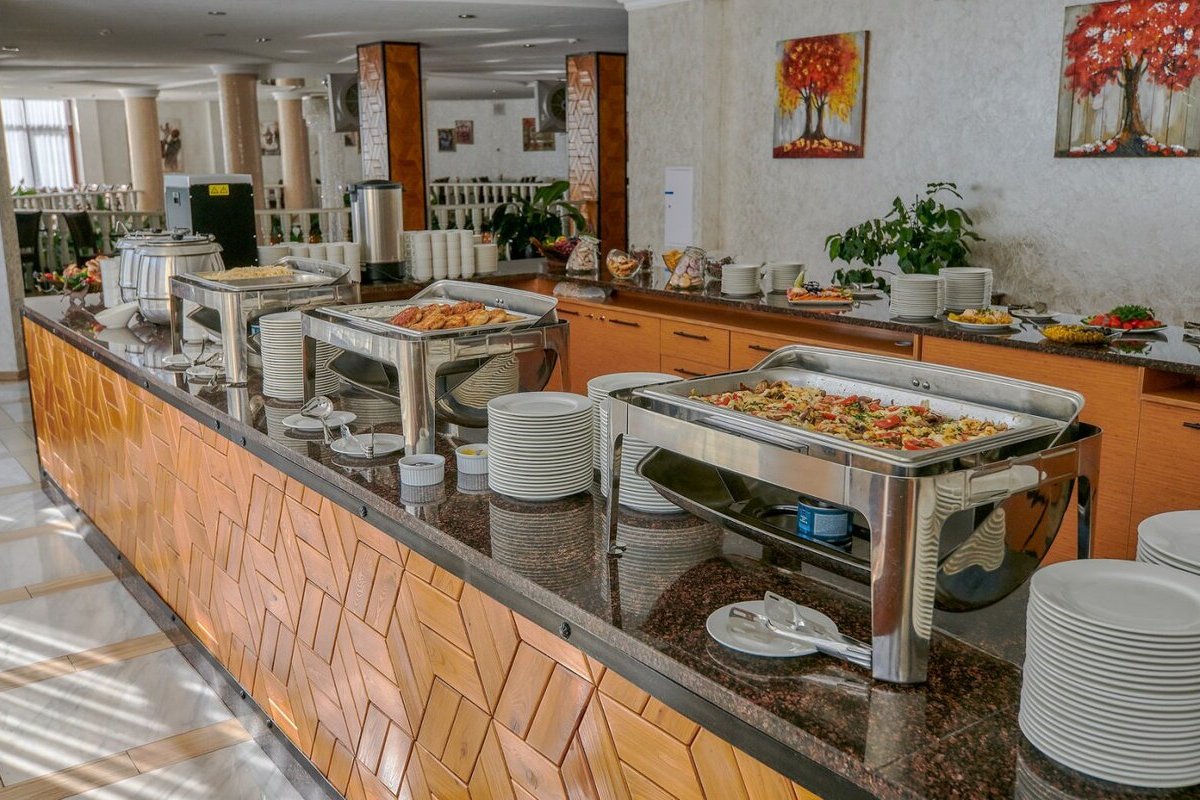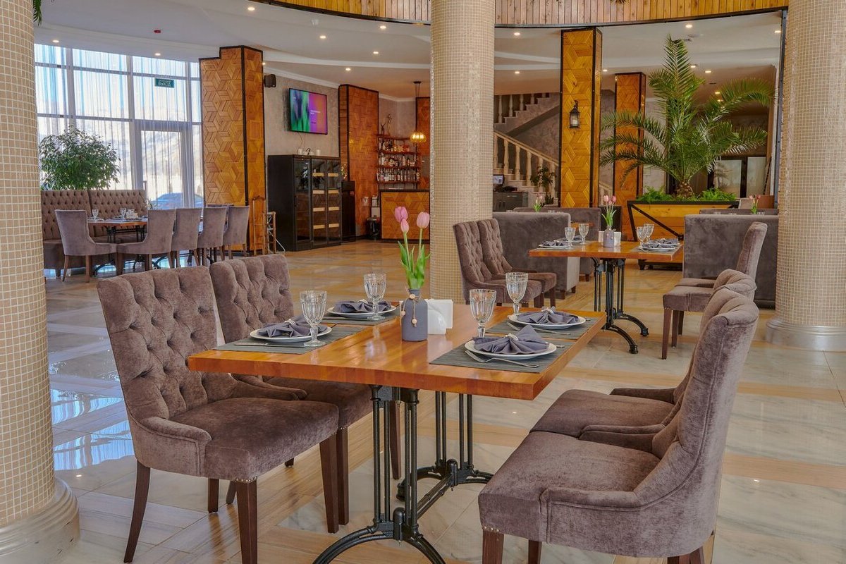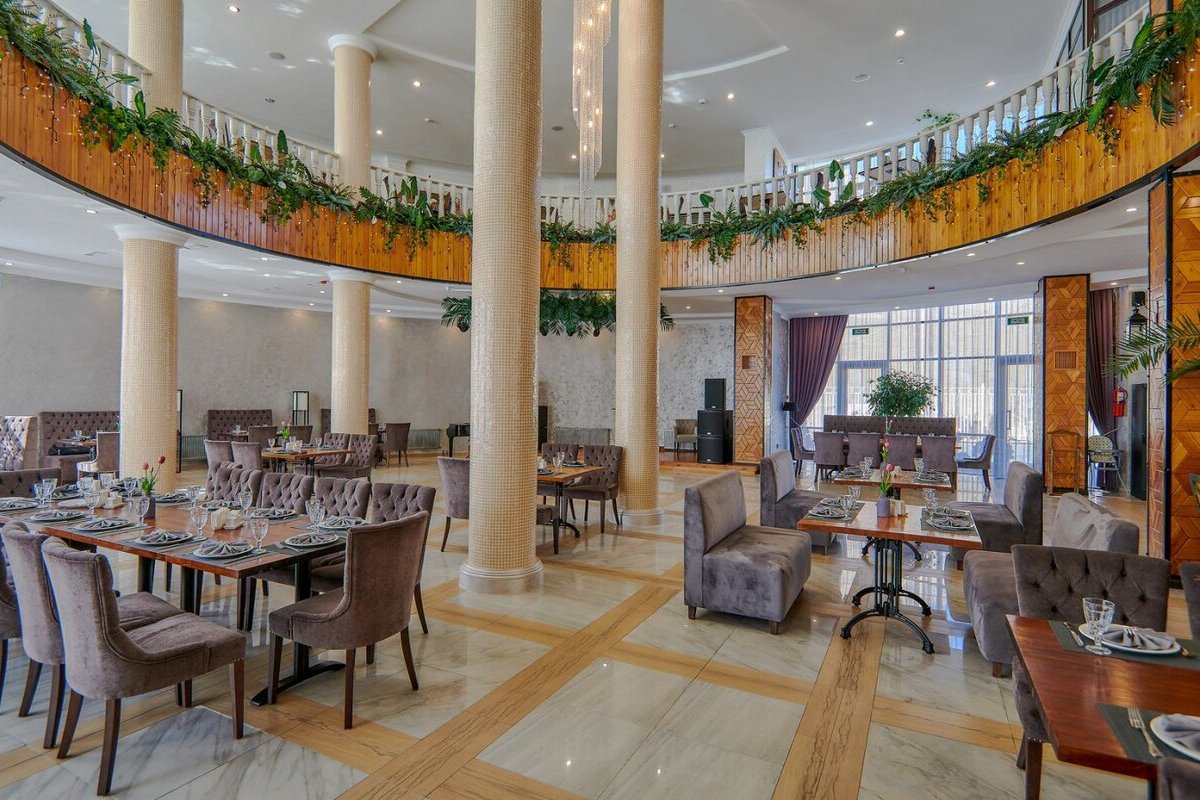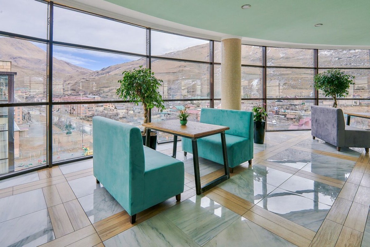 На территории комплекса функционирует несколько заведений питания. Кафе «Роза Ветров» предлагает блюда осетинской кухни, кофейня «Криолло» порадует разнообразием сортов кофе, а «Скай-бар» на верхнем этаже здания позволяет насладиться захватывающими видами на горы. Дополнительно здесь представлен изысканный ресторан с живой музыкой «Азимут».