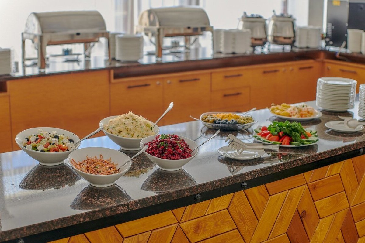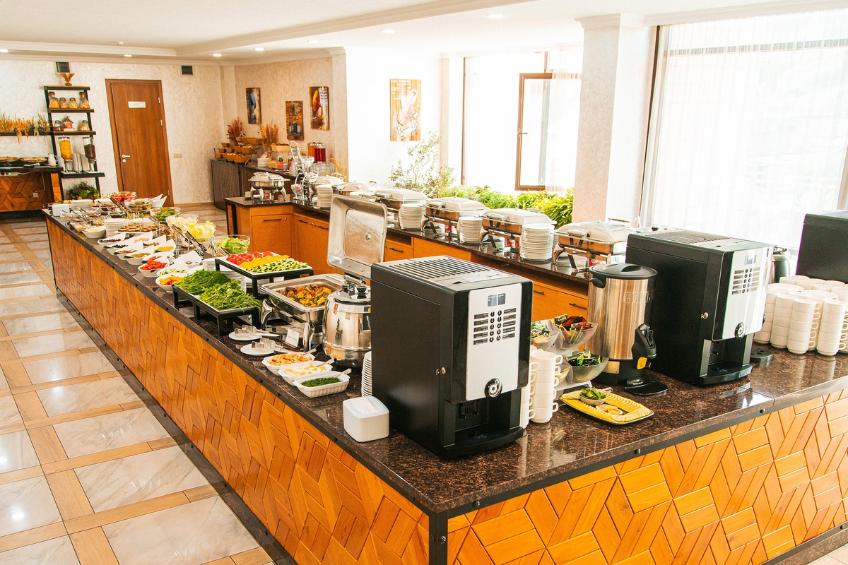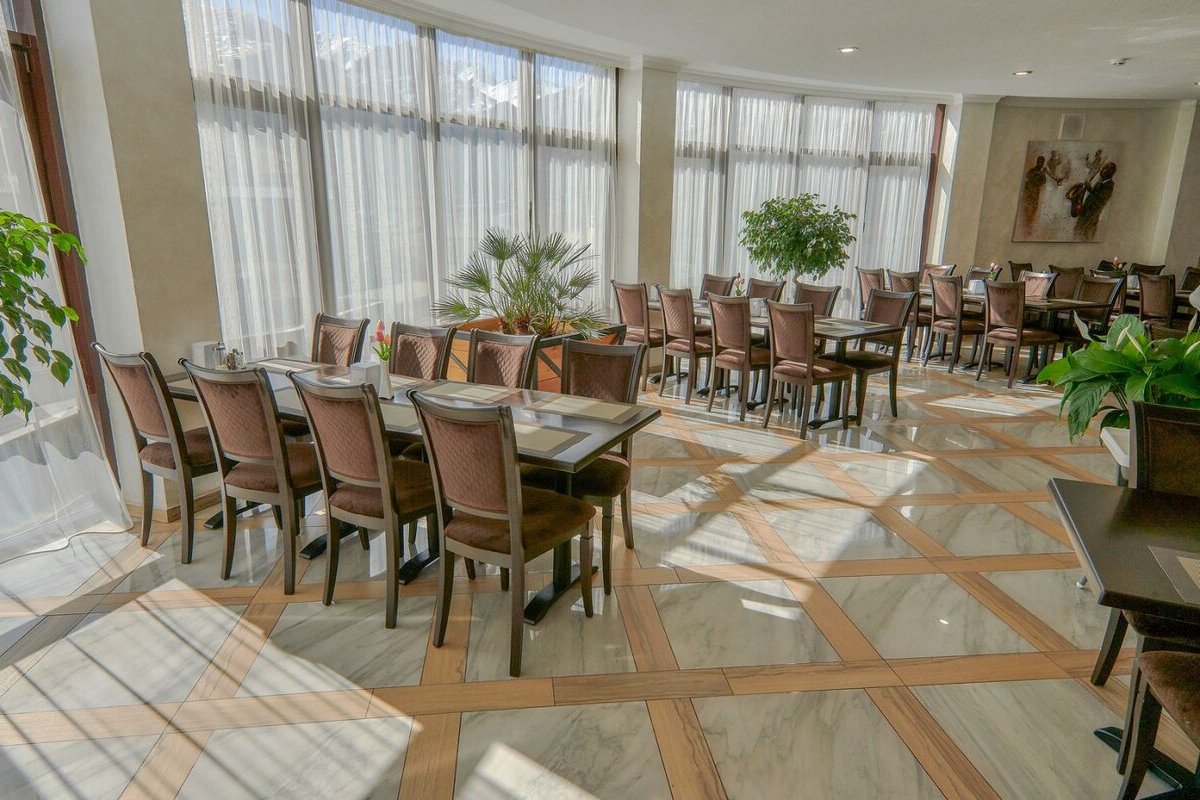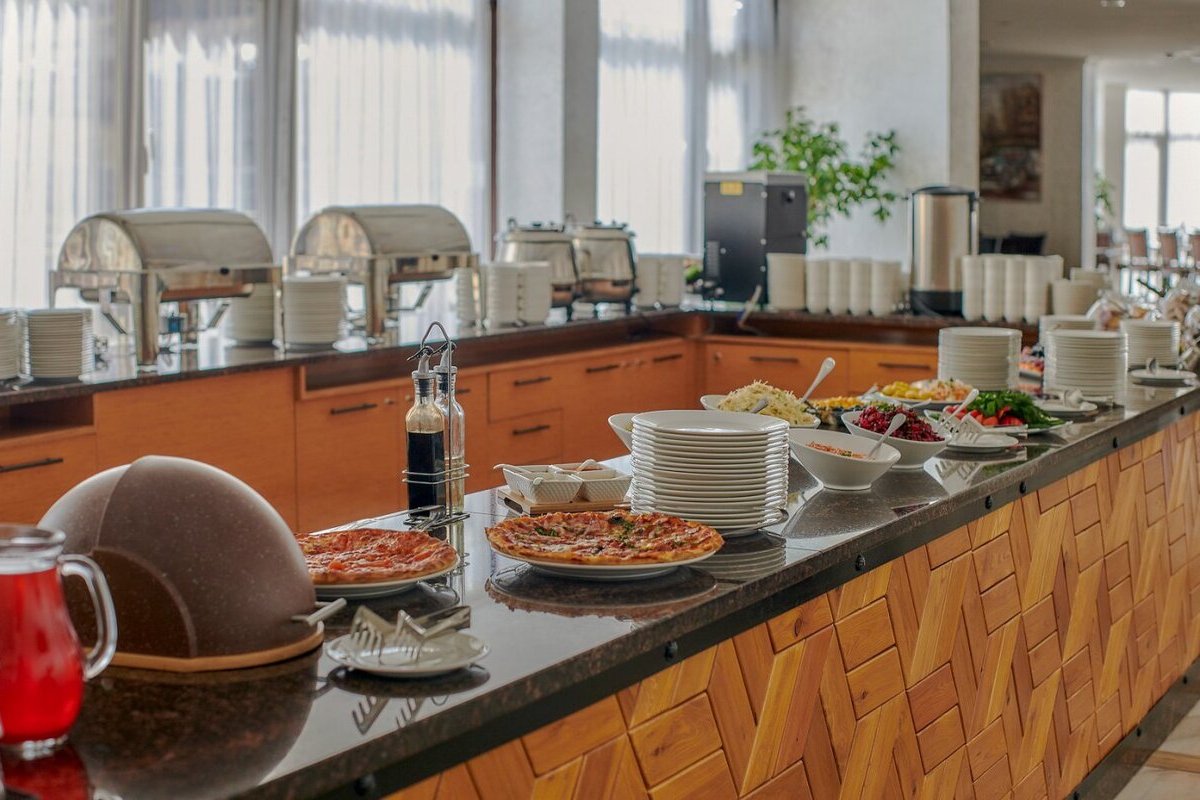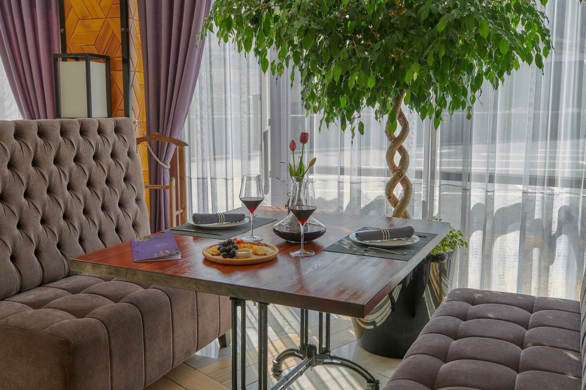 На территории комплекса функционирует несколько заведений питания. Кафе «Роза Ветров» предлагает блюда осетинской кухни, кофейня «Криолло» порадует разнообразием сортов кофе, а «Скай-бар» на верхнем этаже здания позволяет насладиться захватывающими видами на горы. Дополнительно здесь представлен изысканный ресторан с живой музыкой «Азимут».