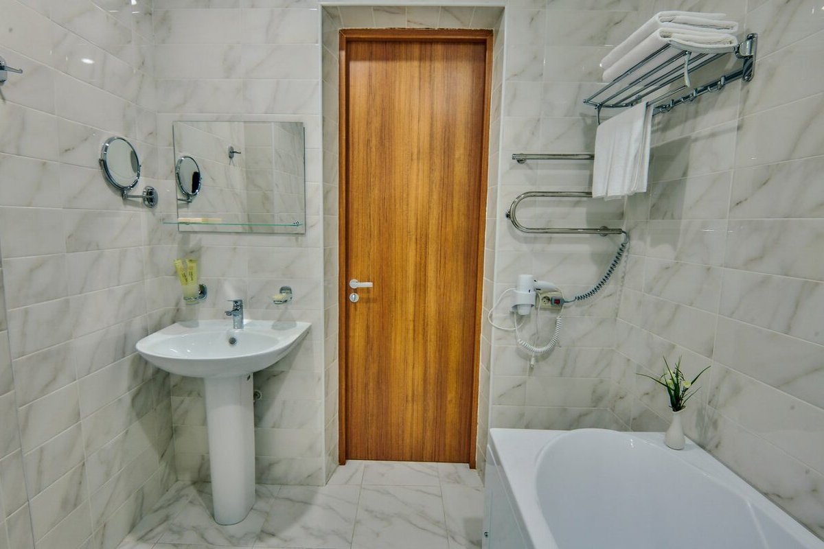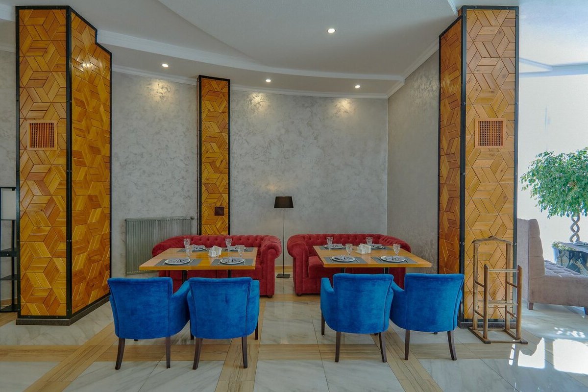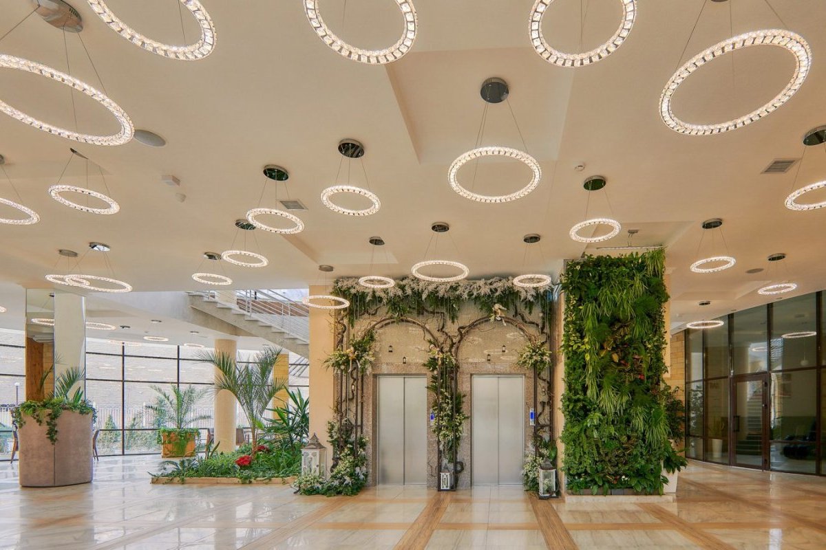 Здание оснащено лифтом, общее количество номеров включает 93 различных варианта — от Стандартов до Люксов. Интерьер номеров отличается лаконичным стилем, имеет современное оснащение, панорамные окна. Ванные комнаты с душем и соответствующими косметическими принадлежностями.