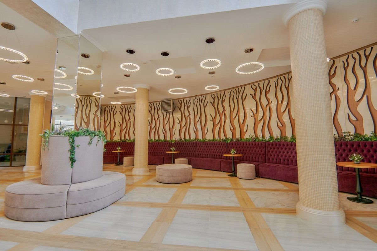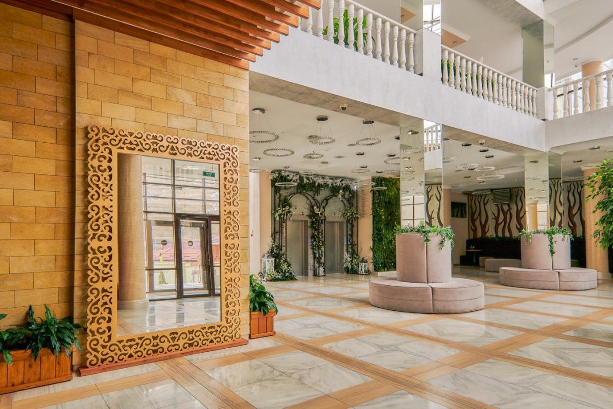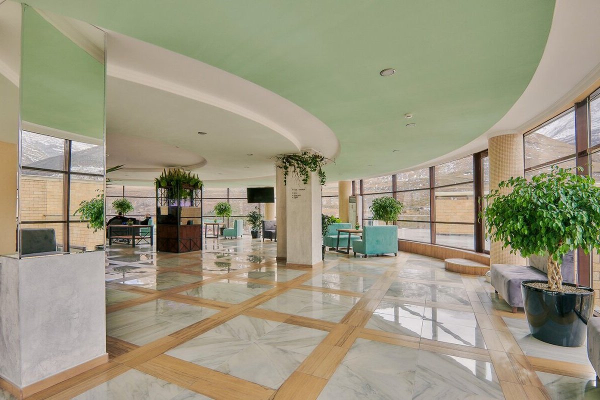 Современное здание комплекса находится так, чтобы у всех гостей был отличный вид на величественные горы Большого Кавказского Хребта.